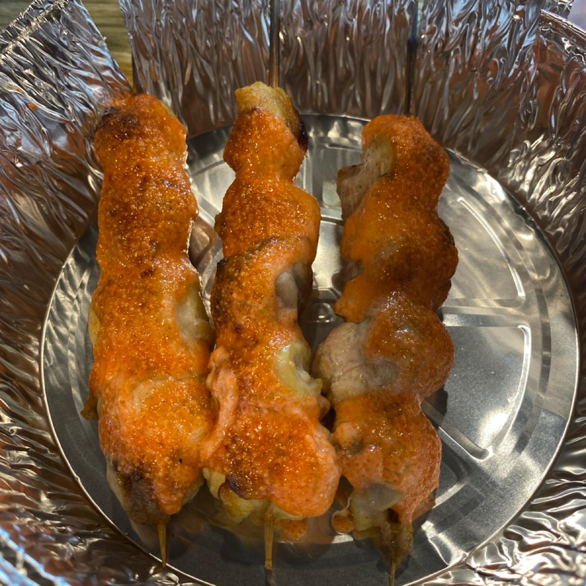 Mentaiko chicken skewers, this one is delicious, not too burnt, not too hard, slightly crispy on the outside and tender on the inside, very good, I remember it was like 90 for one stick.