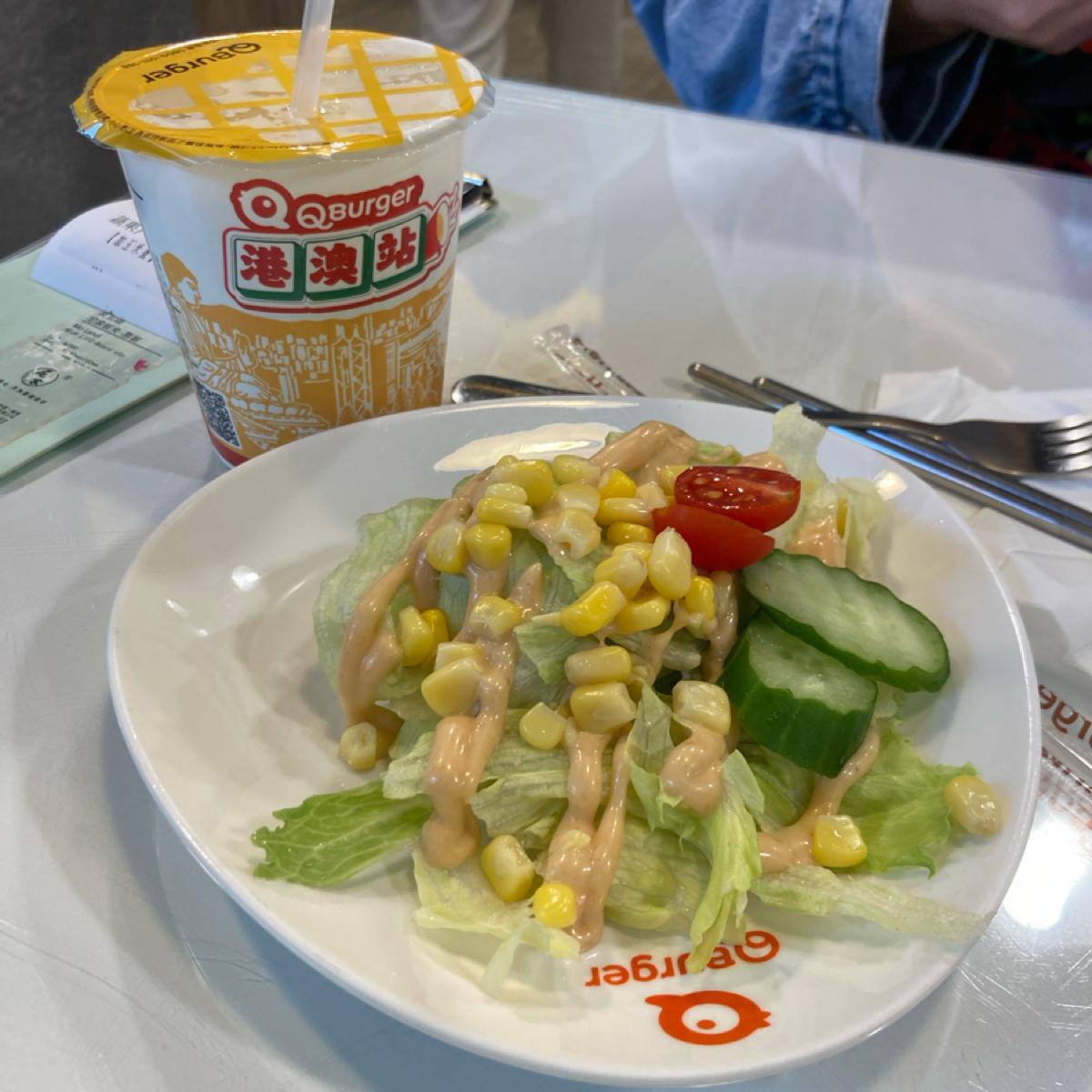 I ordered a set meal that came with a salad and warm unsweetened soy milk. The salad portion is decent, with lettuce, cucumber, corn, and tomato, and it’s packed with ingredients. The soy milk isn’t too watery, and it’s acceptable.