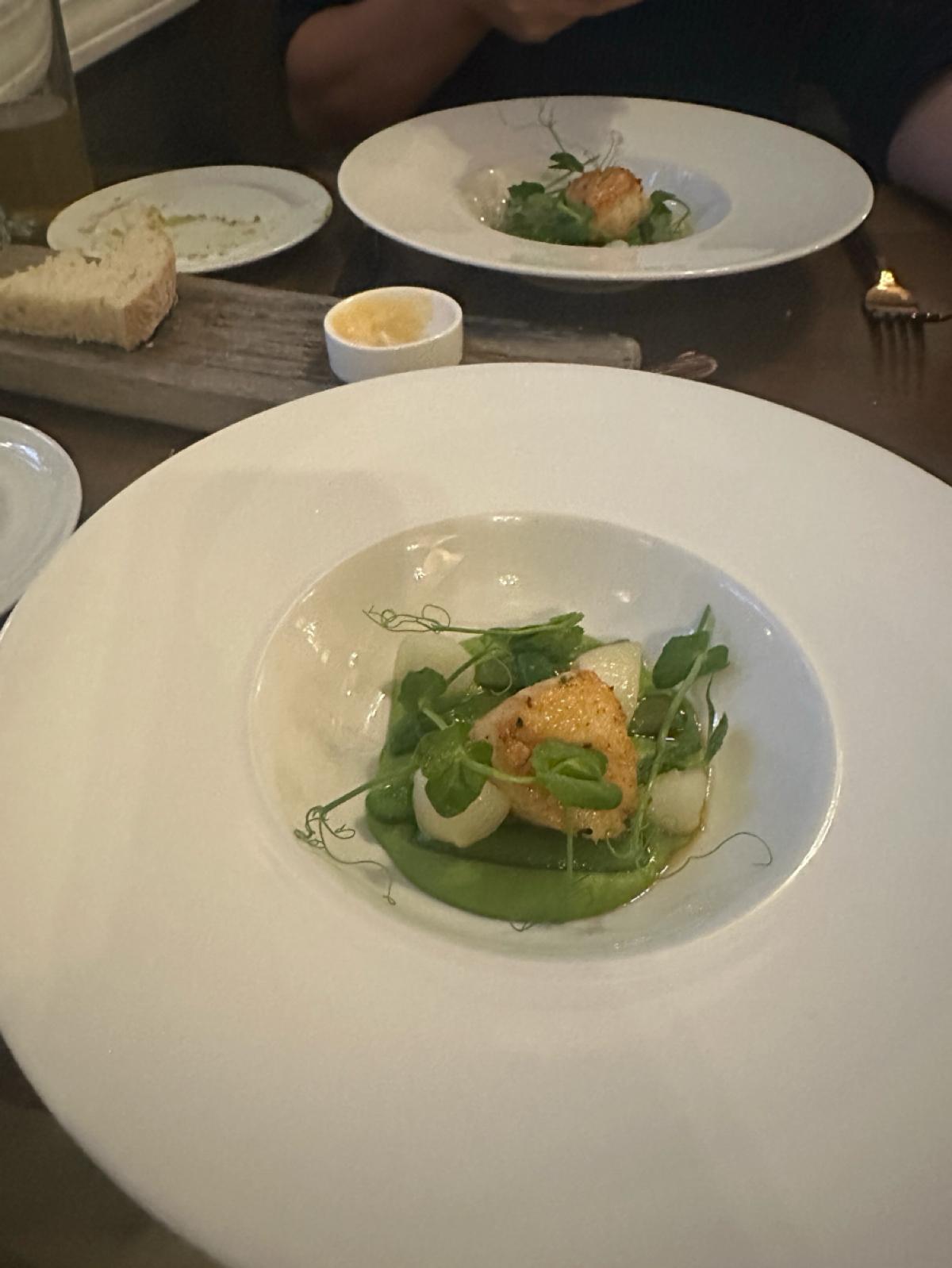 As soon as we arrived at the entrance, a staff member was waiting by the door. After waiting for about two or three minutes, we were allowed to enter and sit down at the restaurant 🍴. The menu here has two different types of courses: one with three dishes and one with five dishes. Besides the appetizers, each option has two choices! My friends and I usually like to share, so aside from one pasta dish 🍝 that I wasn't particularly interested in, we shared everything else.