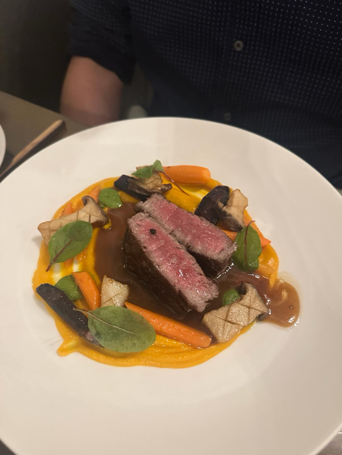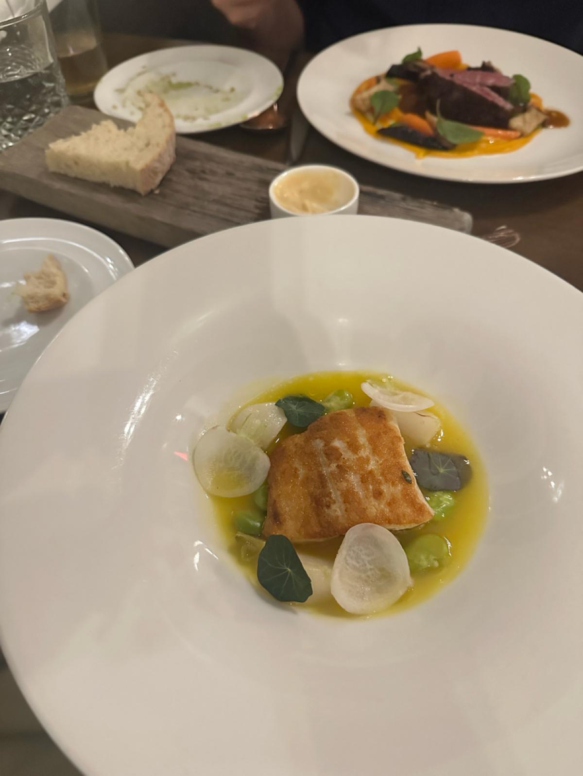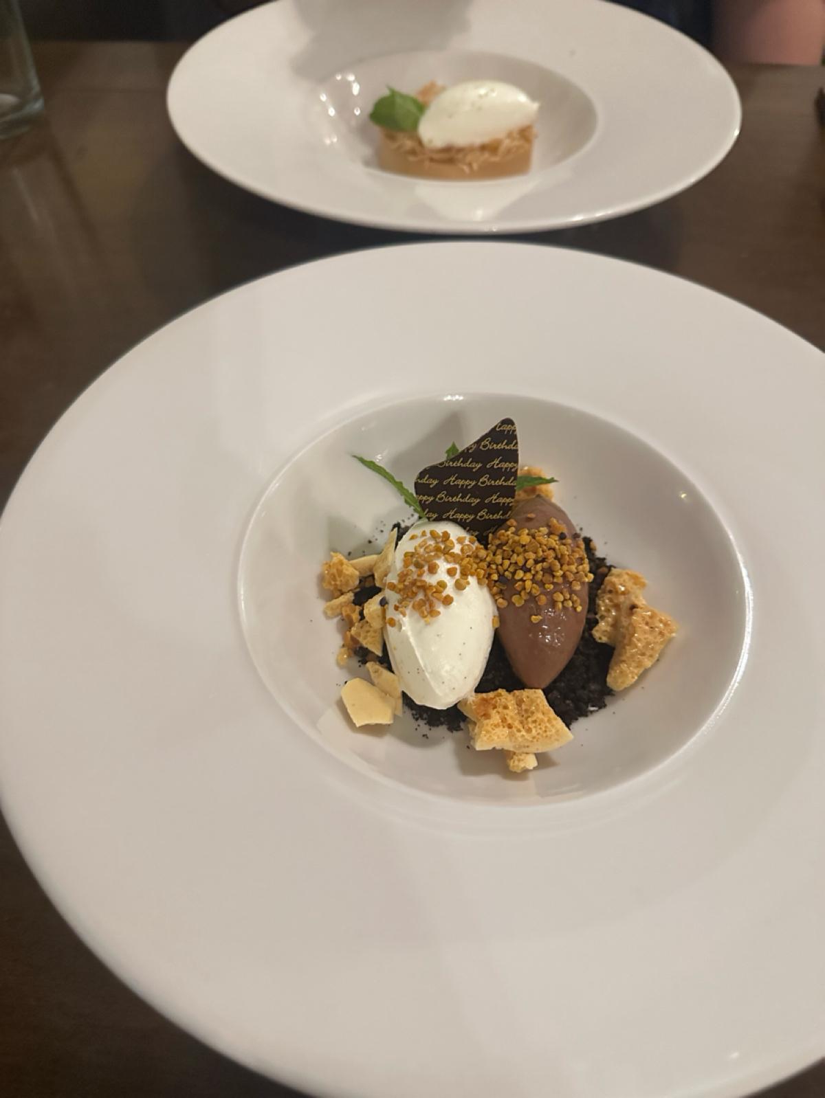 The earlier dishes were so perfect that we had overly high expectations for the main course. However, the fish in the main course was slightly overcooked, possibly because the fish itself had a firmer texture. Therefore, I didn’t have a strong preference for this fish 🐟, but the flavor was still quite harmonious! The steak was cooked to perfection, but because the earlier dishes were so remarkable, I felt that the steak was just a good steak 🥩.