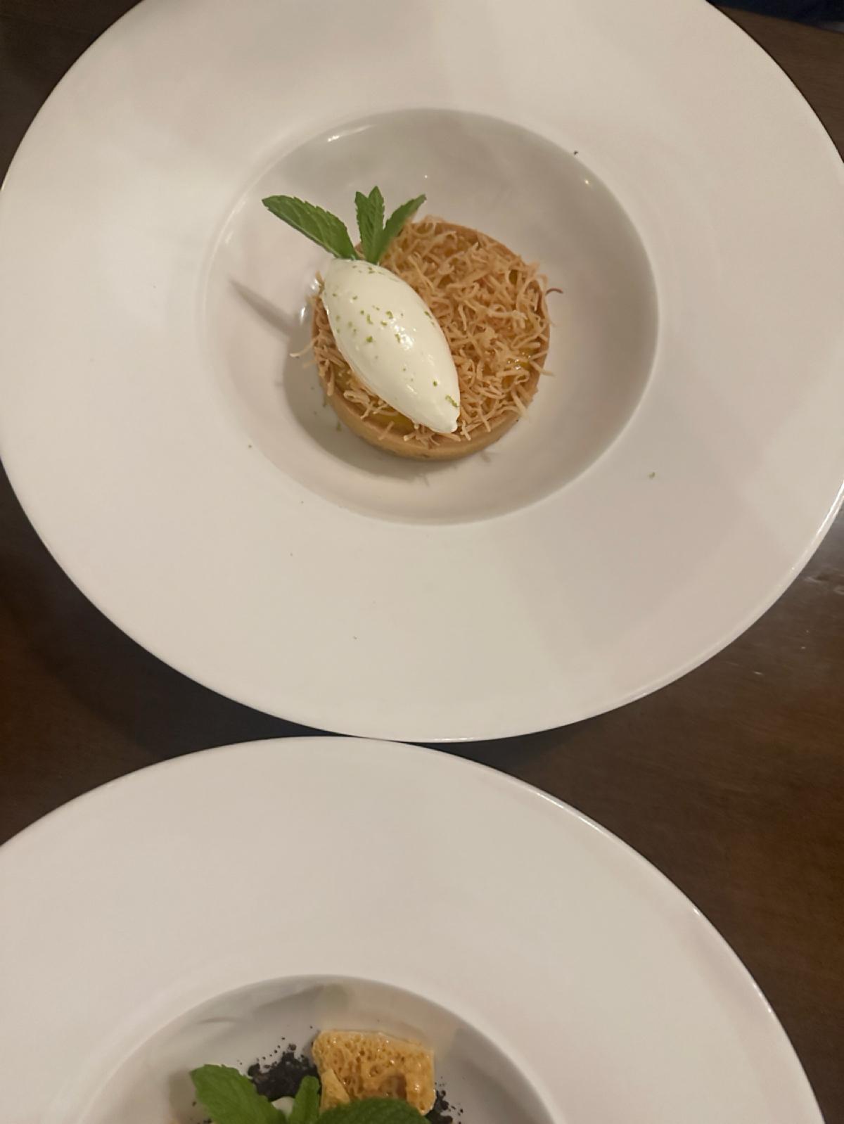 As for desserts, I personally thought the passion fruit tart was quite nice, as its tangy sweetness provided a perfect ending to the meal. The tartness was higher than the sweetness, so it didn't feel overly rich. The other dessert was a clear chocolate and honeycomb creation, which is something Americans tend to enjoy. Even though it was noticeably less sweet, for Asians, it might still be a bit too sweet! So while the texture was good, if you love sweets, you would probably love it, but if you generally eat less sugar, finishing that dessert might be a bit challenging!