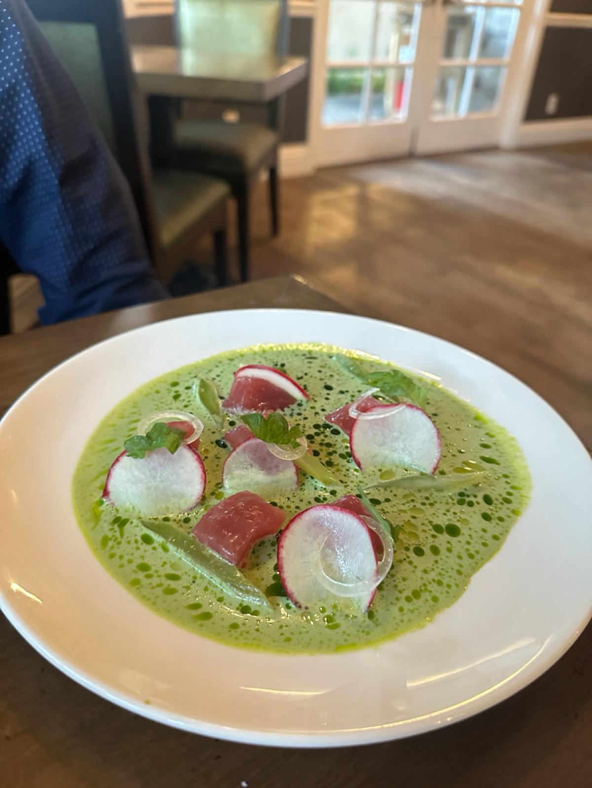 What was special about this dish was that they used beets and onions to create a fresh, slightly sweet flavor to pair with the fish. This not only eliminated the fishy taste but also made the fish taste sweeter!