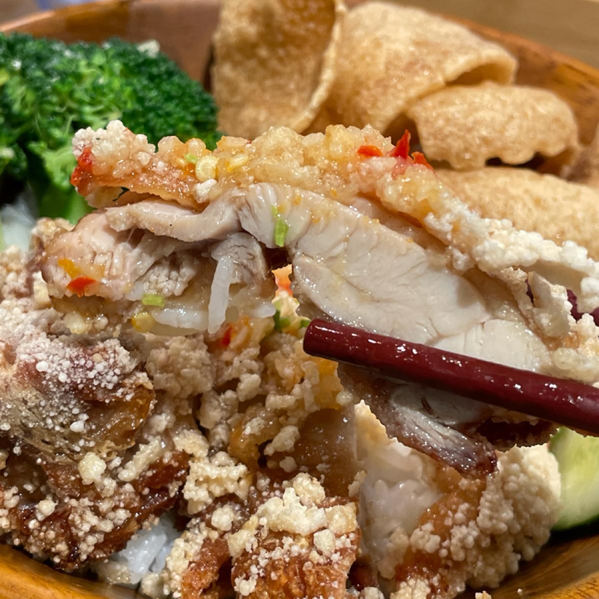 ペッパーチキンはとても台湾らしい味で、揚げた皮は夜市で売られているチキンステーキによく似ています。タレは小さな鍋にあるだけで、甘酸っぱくてあまり特徴がありません。副菜はカリフラワー、エビケーキ、キュウリなど、まあ、ごく普通です。