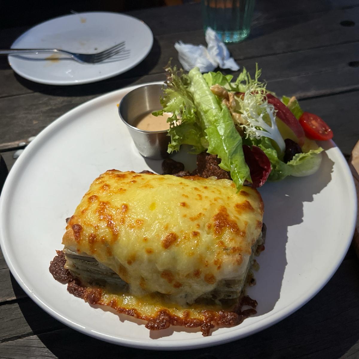 -チーズが黄金色に焼き上がり、炒めたシイタケとソースが層になって重なっていて、バジルの風味が濃厚です。1人で食べるには少し重いかもしれないので、2~3人で他の料理と一緒にシェアするのがちょうどいいと思います!