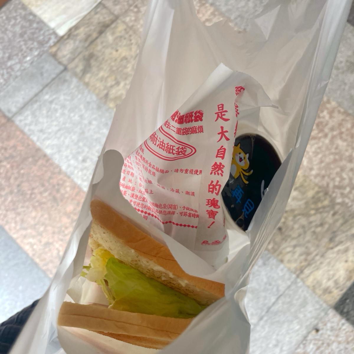 中にはハム、卵、レタス、トマトのスライス、そして麦香鶏が入っていて、全体的に豊富だった。