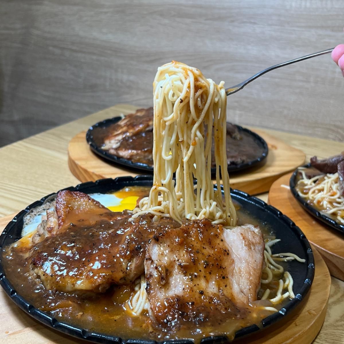 12オンスのステーキは本当に大きく、女性の顔よりも大きいかもしれません。男性にはちょうど良い量ですが、食欲がある方は麺を追加することもできます。ステーキ🥩の焼き加減は調整可能で、肉の筋が少しあるものの非常に柔らかく、肉の風味が豊かです。