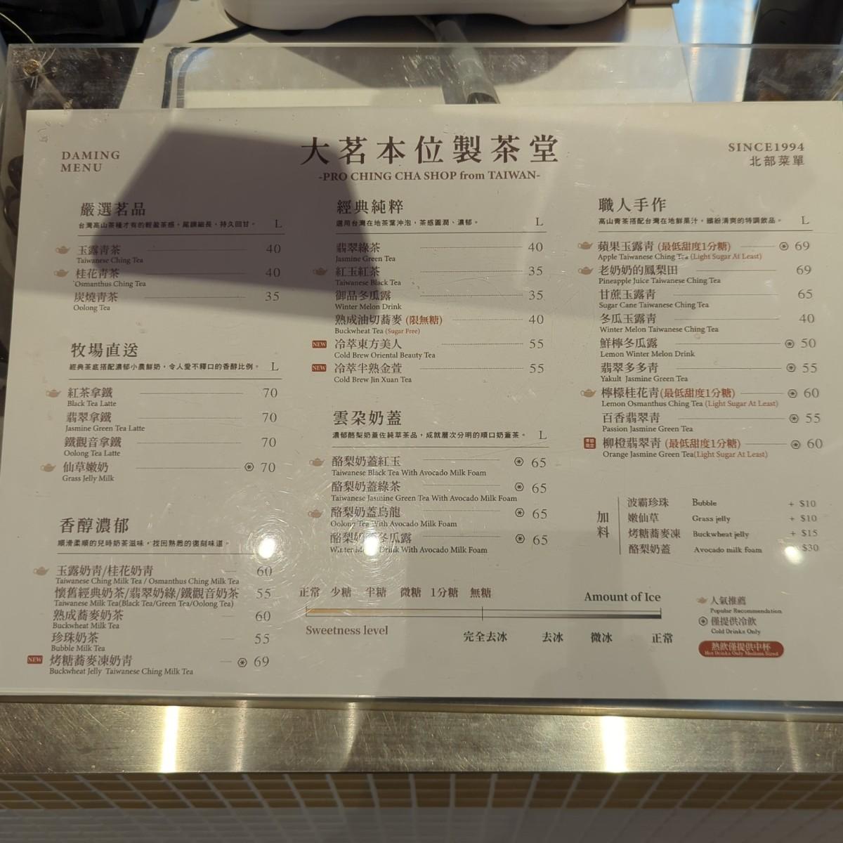 今回は紅翡翠をまぶしたアボカドミルク$65とキンモクセイ緑茶$40を注文しました。