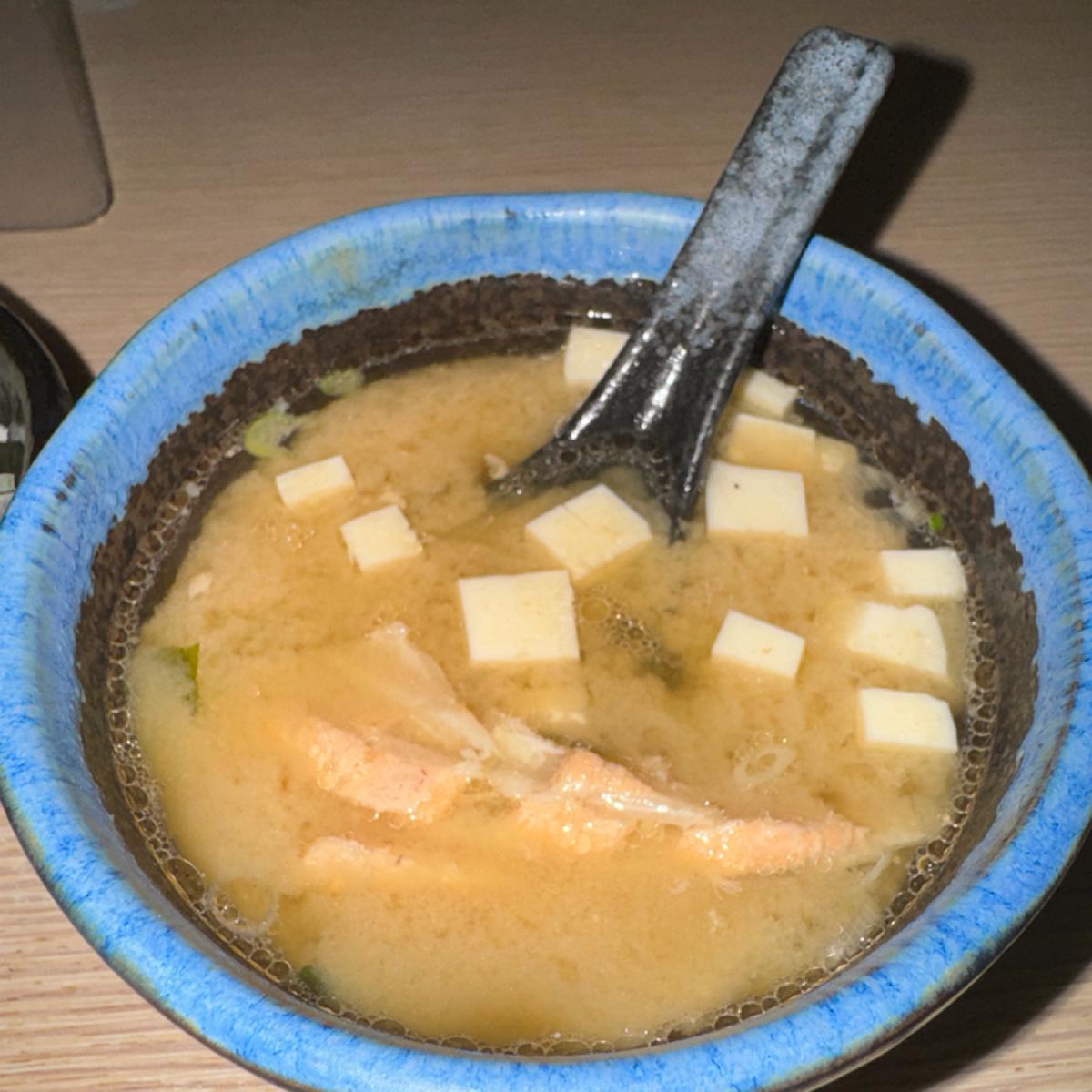 定食を注文すると鮭の味噌汁+サラダまたは小鉢が付きます