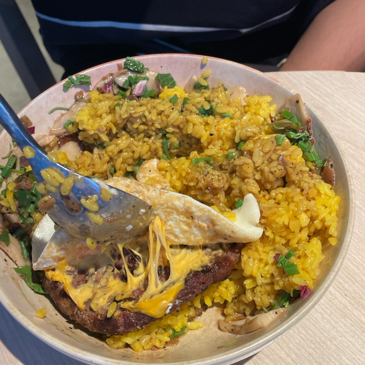 「ブラックペッパーハンバーグライス付き」は私の好みではありません😂 幸い注文しなかったのですが、一方では、ハンバーグは古すぎ、肉は硬すぎます。