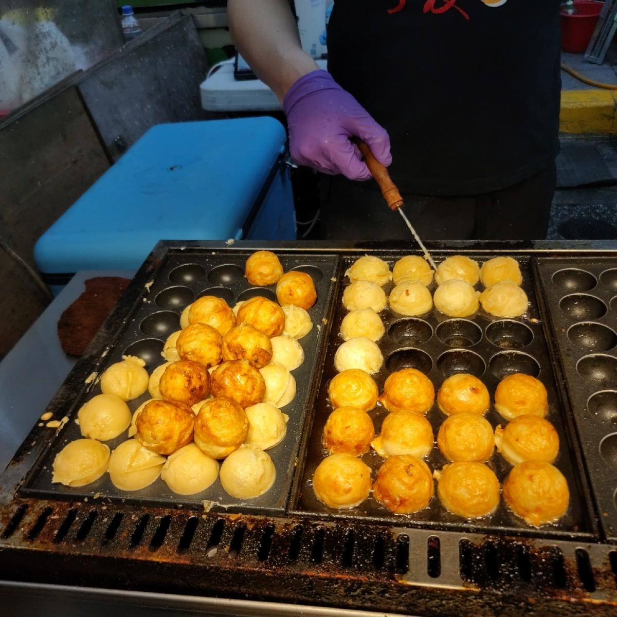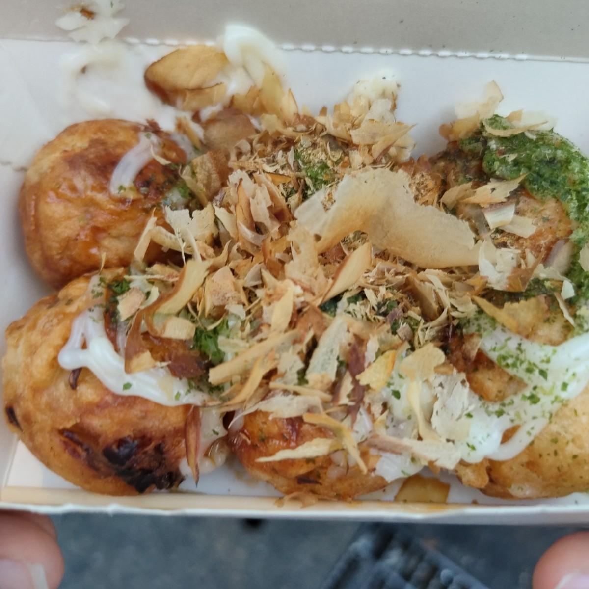 今回は名物のソース焼きを注文しましたが、すぐに食べたかったためか、皮はとても香ばしく、中のタコはかなり大きめの味でした。かなりおいしかったですが、個人的にはタコの塊が少し小さく、生地が多く、具材が少ないように感じました。 全体的にはかなり美味しいです。 屋台の看板は清潔で明るく、目立ちます。