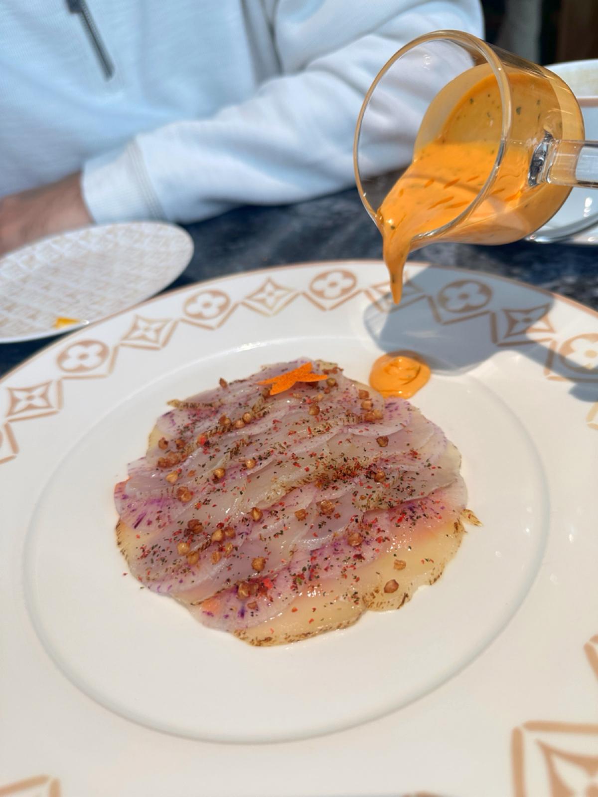 過去のL V店では、私は主にデザート🍦をお勧めしましたが、今回はむしろランチメニューが気に入りました。シェフのセンスが非常に特別で、異なる方法で料理を提供してくれて、ソースの味を使って元々の食材の甘さを引き立てるのがとても上手です。パリに遊びに来る方は、ぜひ試してみてください!