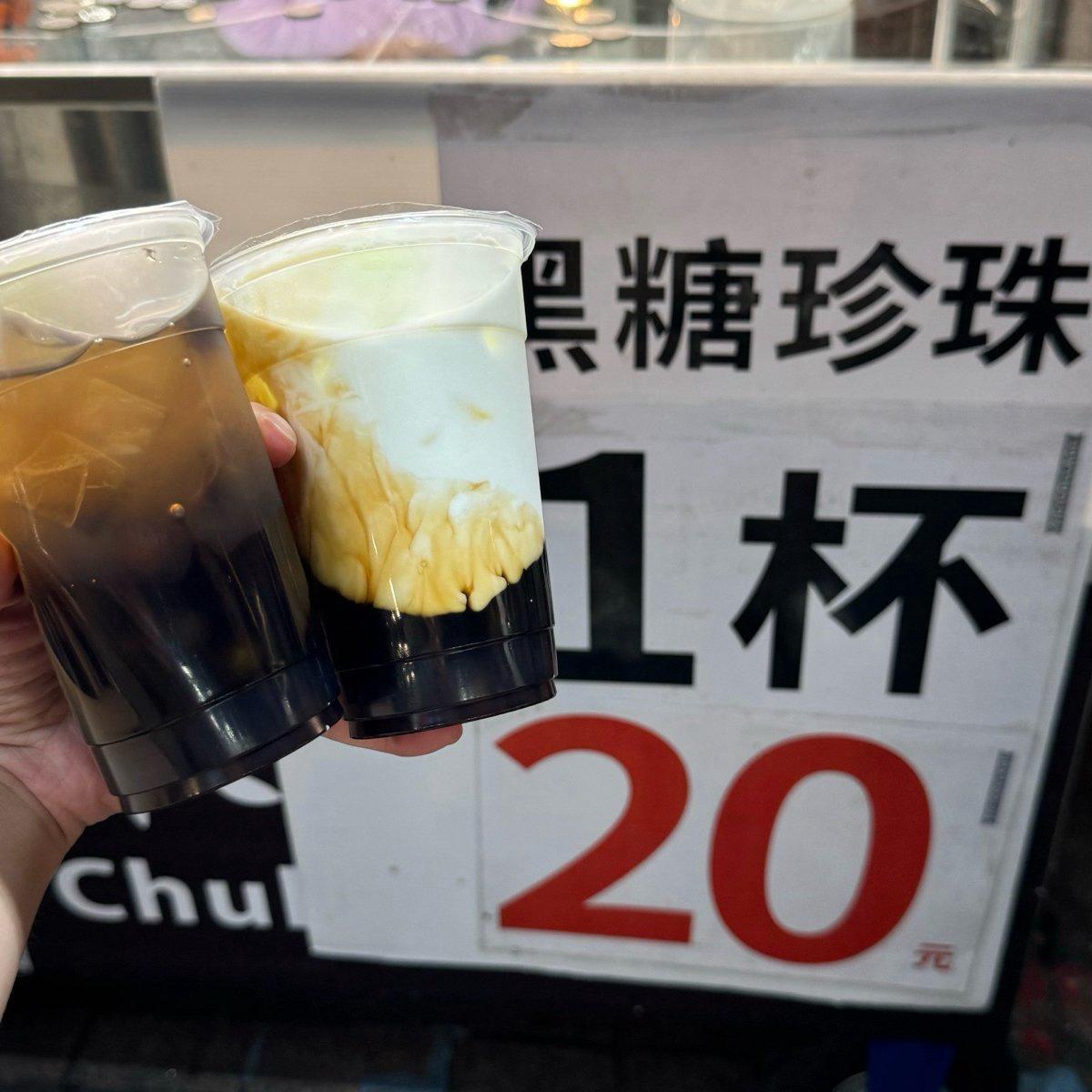 士林夜市にある小さな店では、黒糖真珠 1 カップをわずか 20 台湾ドル、または新鮮な牛乳と一緒に 35 台湾ドルで販売しています。各カップには大さじ 2 杯の黒糖真珠が入っており、見た目も 2 色で、見た目も楽しいです。目😆