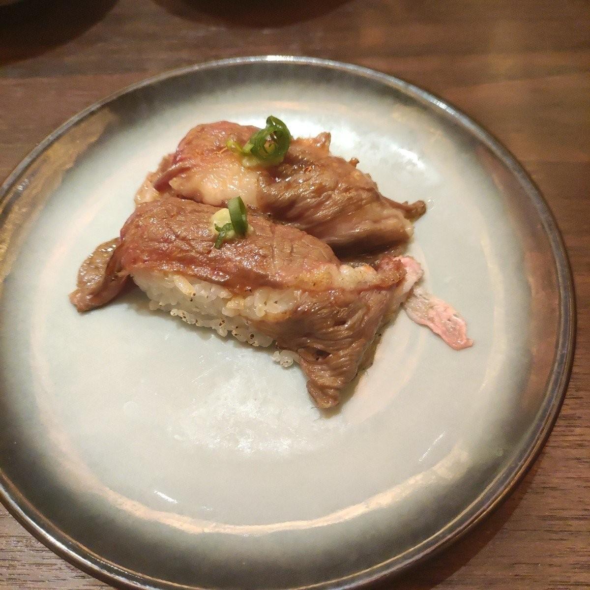 今回は和牛定食を始めたというので早速注文しました。一人前899元+10%の989元です。和牛定食は主に前菜として和牛の炙り握り寿司が提供されます。オーストラリア産M6-7和牛前すね、オーストラリア産M6-7和牛スリーポイントビーフ、アメリカ産USDAプライムトップナチュラル牛肩肉の中でも、私のお気に入りは肩甲骨です。とても柔らかくて牛肉の旨みもたっぷりで、冷麺も付いていて、少しピリ辛な味付けがとても食欲をそそります。肉を食べるときに味を変えて注文します。