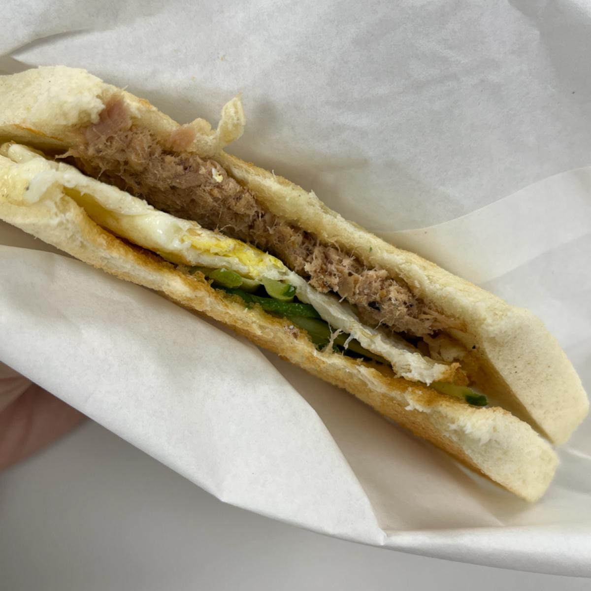 🥪 マグロの卵はパサパサすぎて私の好みではなかったので、飲み物と一緒に食べなければなりませんでした。