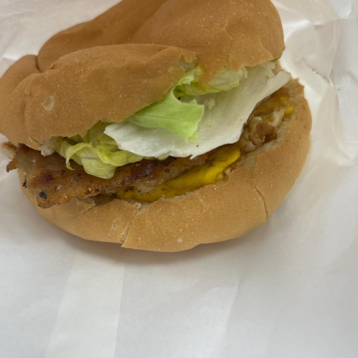 🍔 ハンバーグエッグはとんかつで、野菜やトッピングと組み合わせて、パサつきすぎず、少しジューシーな味わいです。