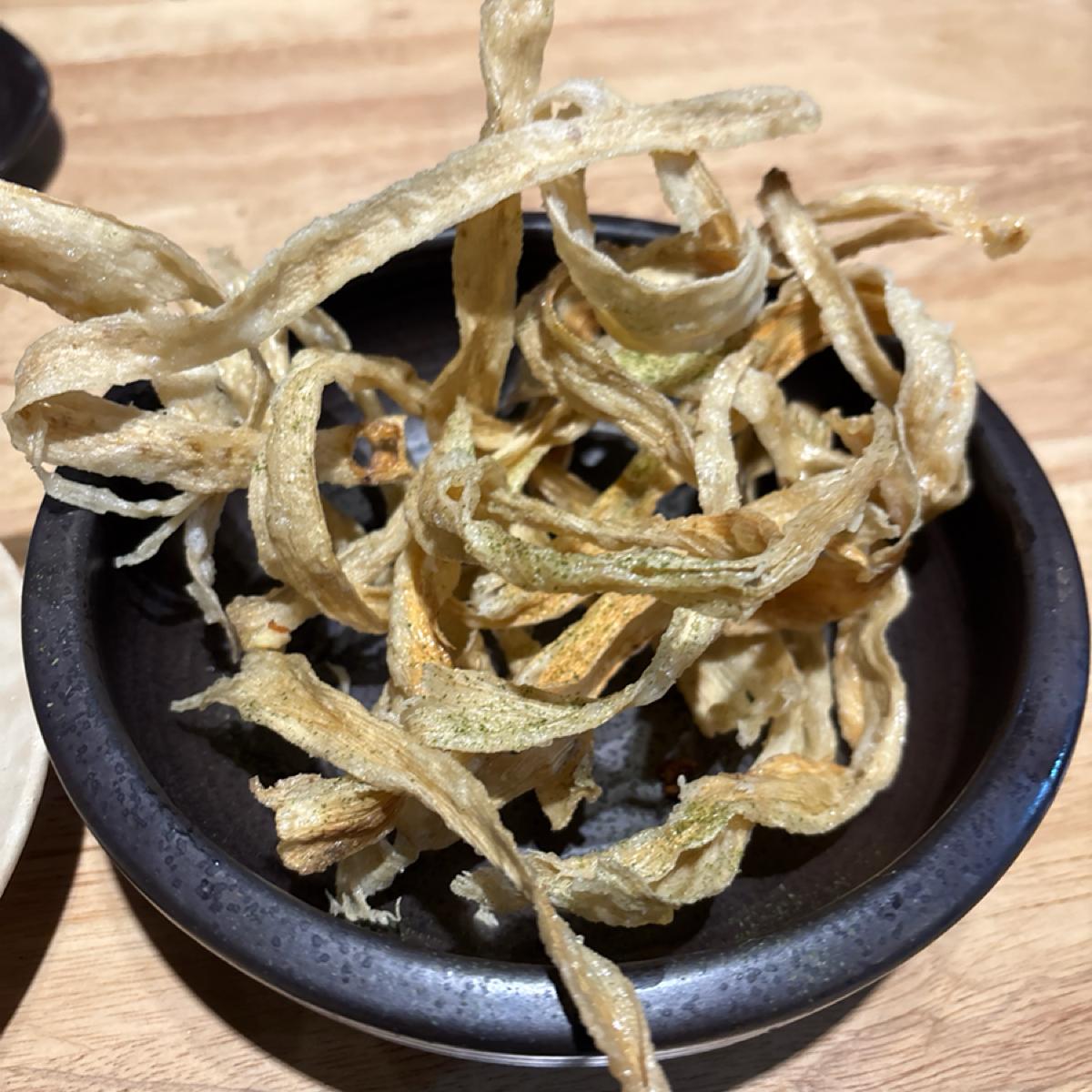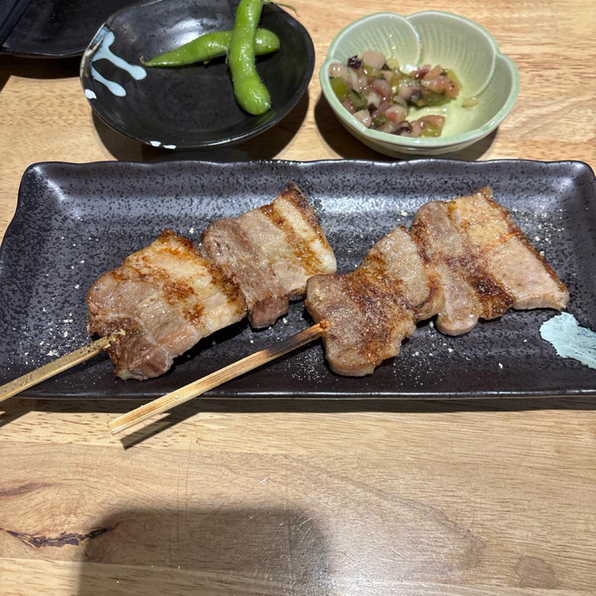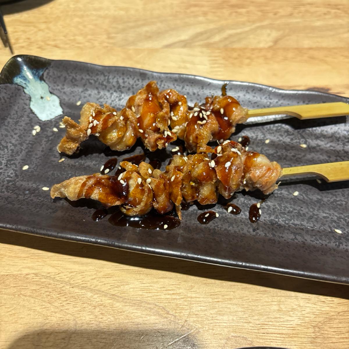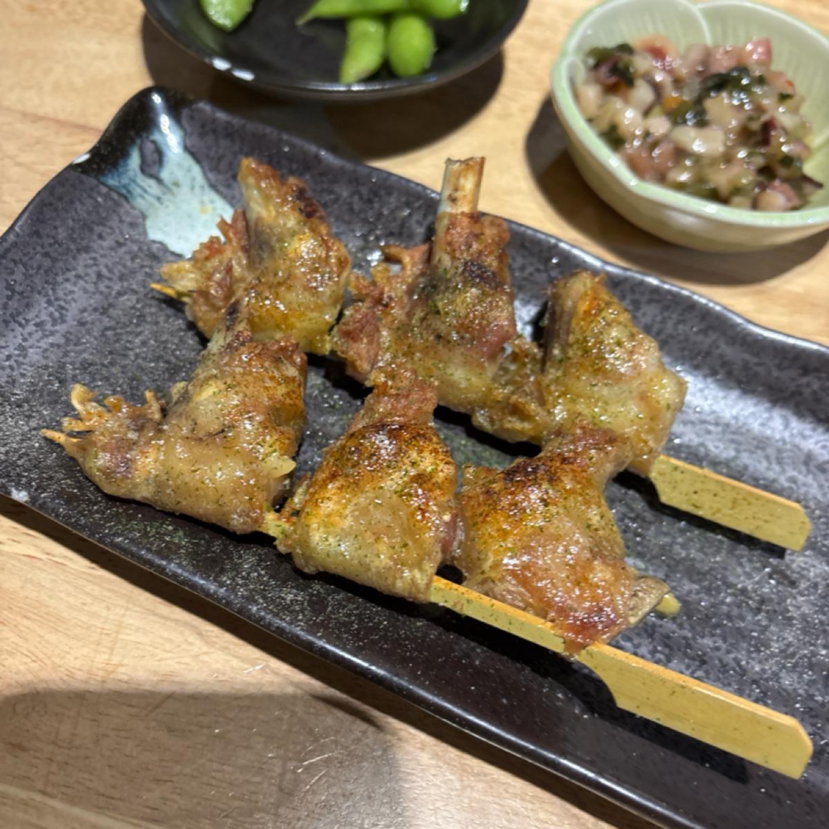 串焼きは見事な表現で、鶏皮は外はサクサク、中は柔らかく、豚バラは豊かな香ばしさがあります。酒のおつまみとして、たこわさびの冷菜と枝豆が塩気と香ばしさを加えています。野菜の焼き物としては、ズッキーニや白アスパラがさっぱりとしていて、皆でシェアするのにぴったりです。唐揚げはサクサクで脂っこくなく、牛蒡の fried stripsはサクサクしていて、酒の相棒になります。