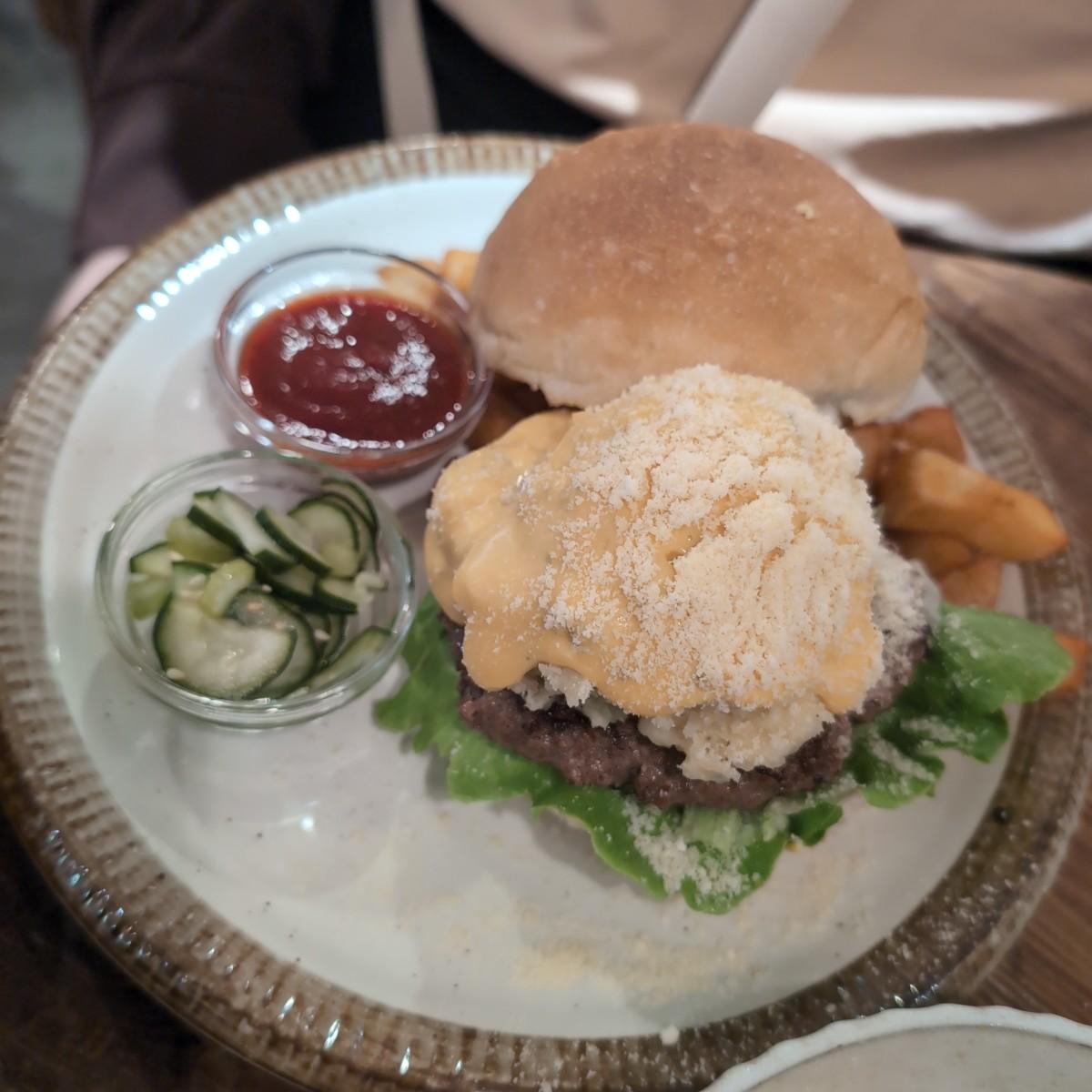 ただ、ハンバーガーは少し改良の余地があるかもしれません... しっかりとした材料で作られているため、ナイフとフォークだけでは食べるのが少し難しいかも。お店が提供するハンバーガー用の紙を使うと、もっと快適に食べられると思いますよ✨