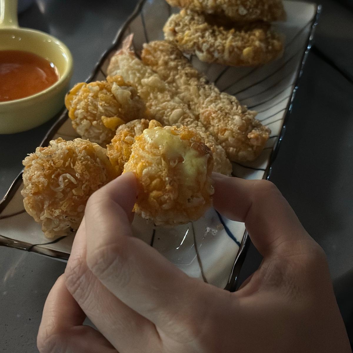 特に黒板メニューにある溶岩エビボールは、金色の砂が詰まっていて、液体が弾けます。