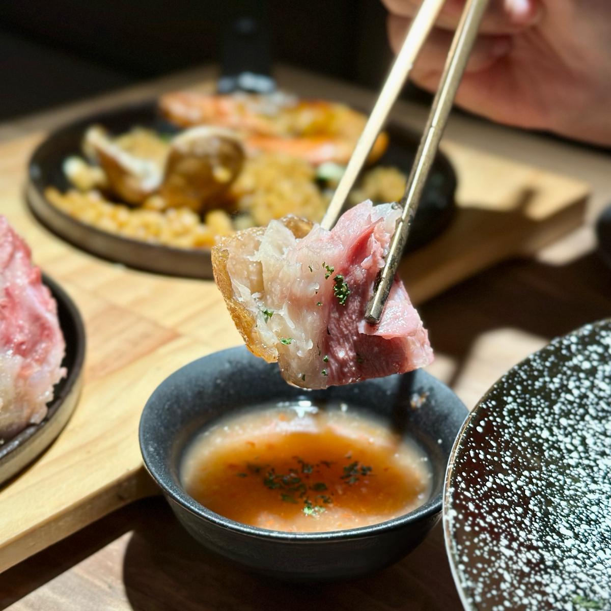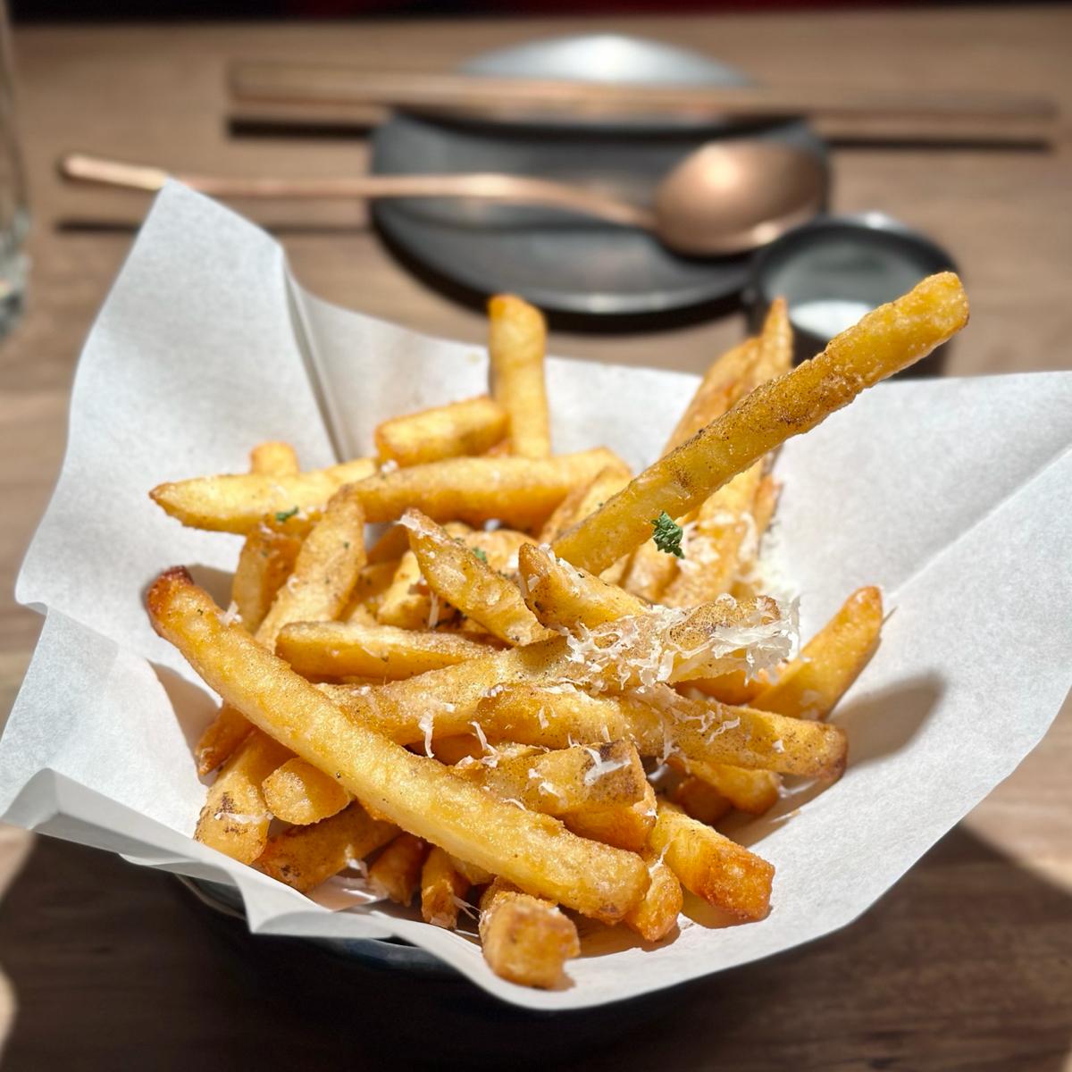 ✅ トリュフのフライドポテト:衣をまぶしたフライドポテトにトリュフパウダーとトリュフオイルを使い、さらにトリュフヨーグルトソースを添えて提供されます。そのまま食べると香ばしくてカリカリなポテトで、微かなトリュフの香りが感じられます。酸味のあるヨーグルトソースと合わせることで全体の風味が一層すっきりとし、トリュフの味わいがより濃厚になります。