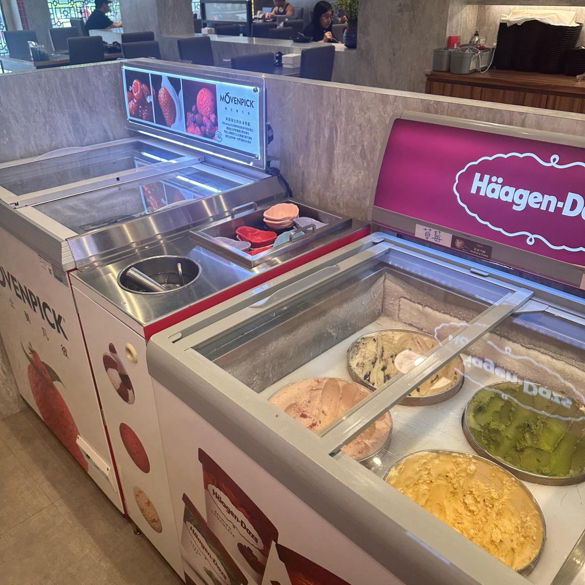 アイスクリームはモーベンピック+ハーゲンダッツの筐体が各2箱ずつ、計16種類。
