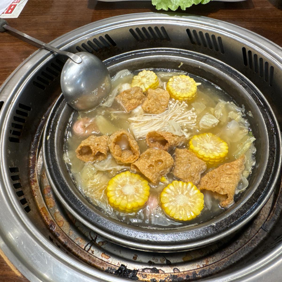 牛肉の部分(そのうちの一つ)は、店員さんが炒めてから煮るとより美味しくなると言っていました😋 注文が終わった後、すぐに店員さんが料理を運んできました。私たちはまずソースコーナーで自分の好きなソースを調整しました。飲み物の部分では、ミルクティーや緑茶を自由に取ることができました。