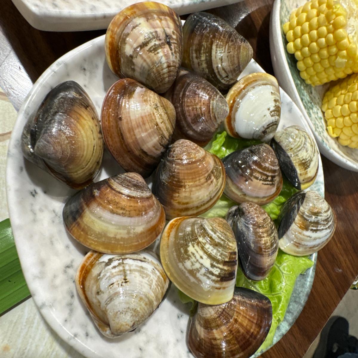 注文のときに先にメインの鍋を選び、野菜の盛り合わせが付いてきます。今日は3人で食事をするので、みんな牛肉鍋を選びました。さらに、アサリ、魚餃子、タラ団子も単品で注文しました。