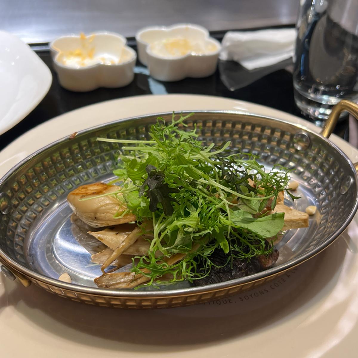 王品グループ傘下の高級鉄板焼き、行く前には必ず予約が必要です。さらに王品のアプリをダウンロードすることをお勧めします。なぜなら、たくさんの割引がアプリ内にあるからです。誕生月に行くと、多くのクーポンももらえます。この鉄板焼きは駐車もかなり便利で、路上駐車スペースがたくさんありますし、隣に東興駐車場もあります。店内の雰囲気はとても美しく、料理もとても美味しく、サービスも素晴らしいです👍。特におすすめは鴨の胸肉で、量も十分で、しかもスープの旨味が残っています~。