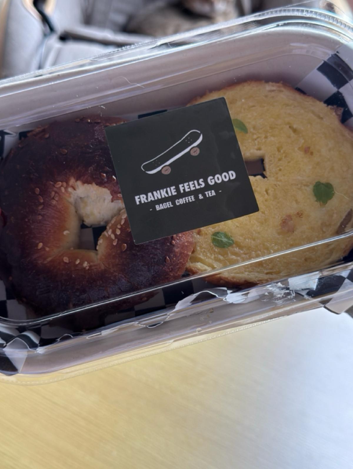 Frankie feels good は街角のカフェで、モントリオールベーグルを専門にしています。ニューヨークベーグルよりも硬さがなく、でも噛みごたえのあるモントリオールベーグル(白ごま入り)が大好きです!