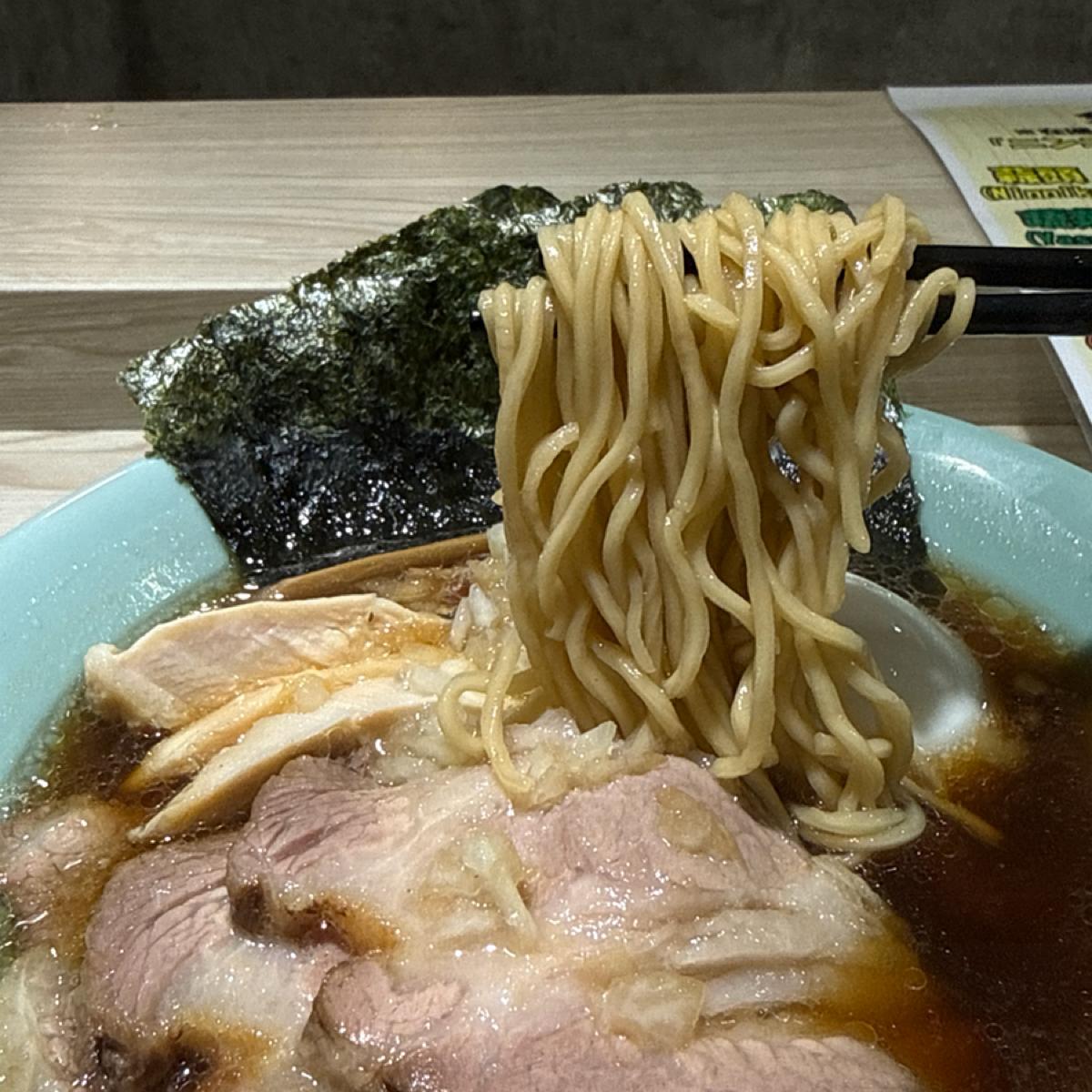まずは《超特八王子ラーメン》。これは「超特」バージョンなので、確かに量が多めで、一般的な食べる量にとってはかなり存在感があります。スープは醤油系のルートを歩んでいて、塩分は明らかですが、しょっぱすぎず、むしろ旨味がしっかりしていることで口当たりが良くなっています。しょっぱいと叫びながらもついつい飲みたくなるタイプです。半熟卵は熟度が絶妙で、卵黄はなめらか、白身も味が染みており、全体のラーメンの中で完成度が非常に高い脇役です。残念ながらチャーシューはやや弱く、食感は少しパサついており、脂肪の柔らかさが欠けていて、スープの厚みと比べると少しバランスを欠いています。