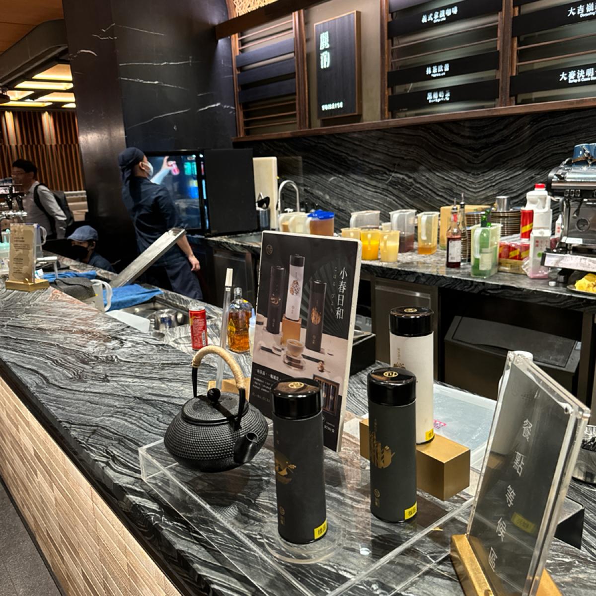 ドリンクエリアにはたくさんの選択肢があります。私のお気に入りはカルピスソーダです。大きな魚や肉の脂っこさを軽減する淹れたてのお茶もあります。