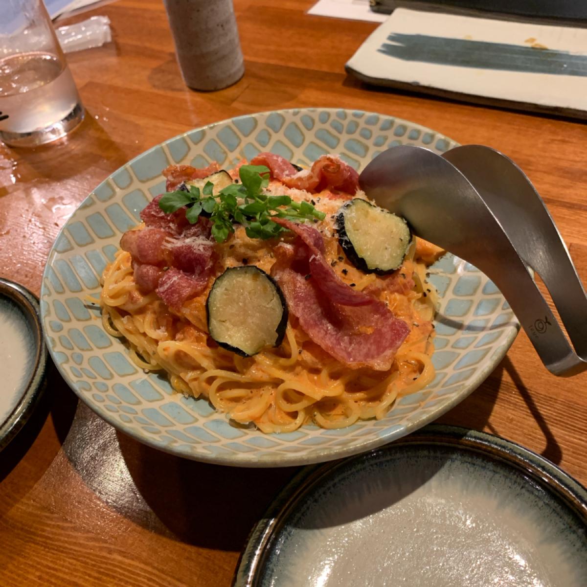 ジューシーな茄子が添えなトマトクリームパスタでした🍅🍆