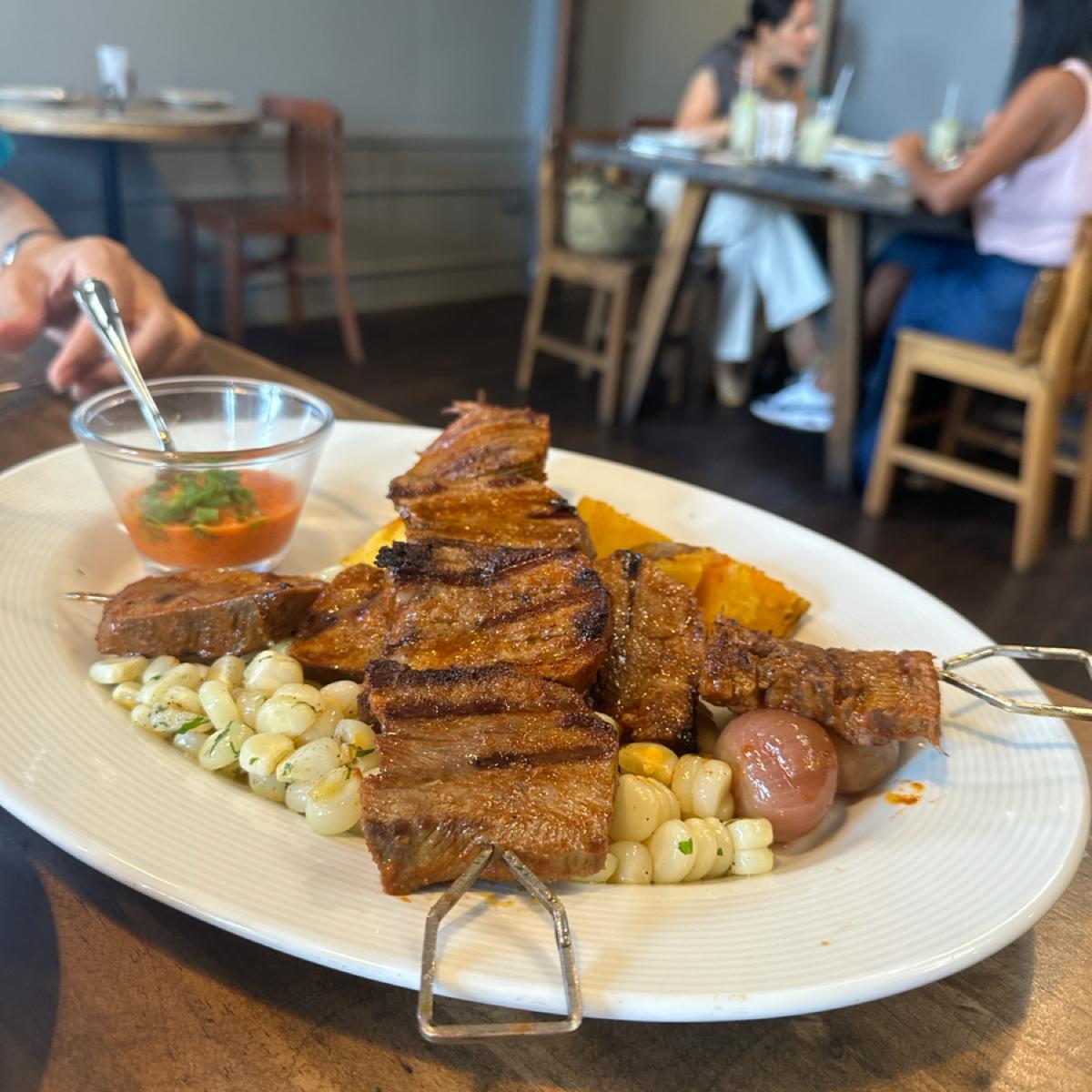 こちらは牛タンをケバブのように焼き上げたものです!一口食べたときはちょっと濃いかなと思いましたが、添えてあるローストポテトが味のバランスを整えてくれます!牛タンの焼き物は柔らかくて美味しい~焼肉屋さんで食べたい方はぜひ注文してください!