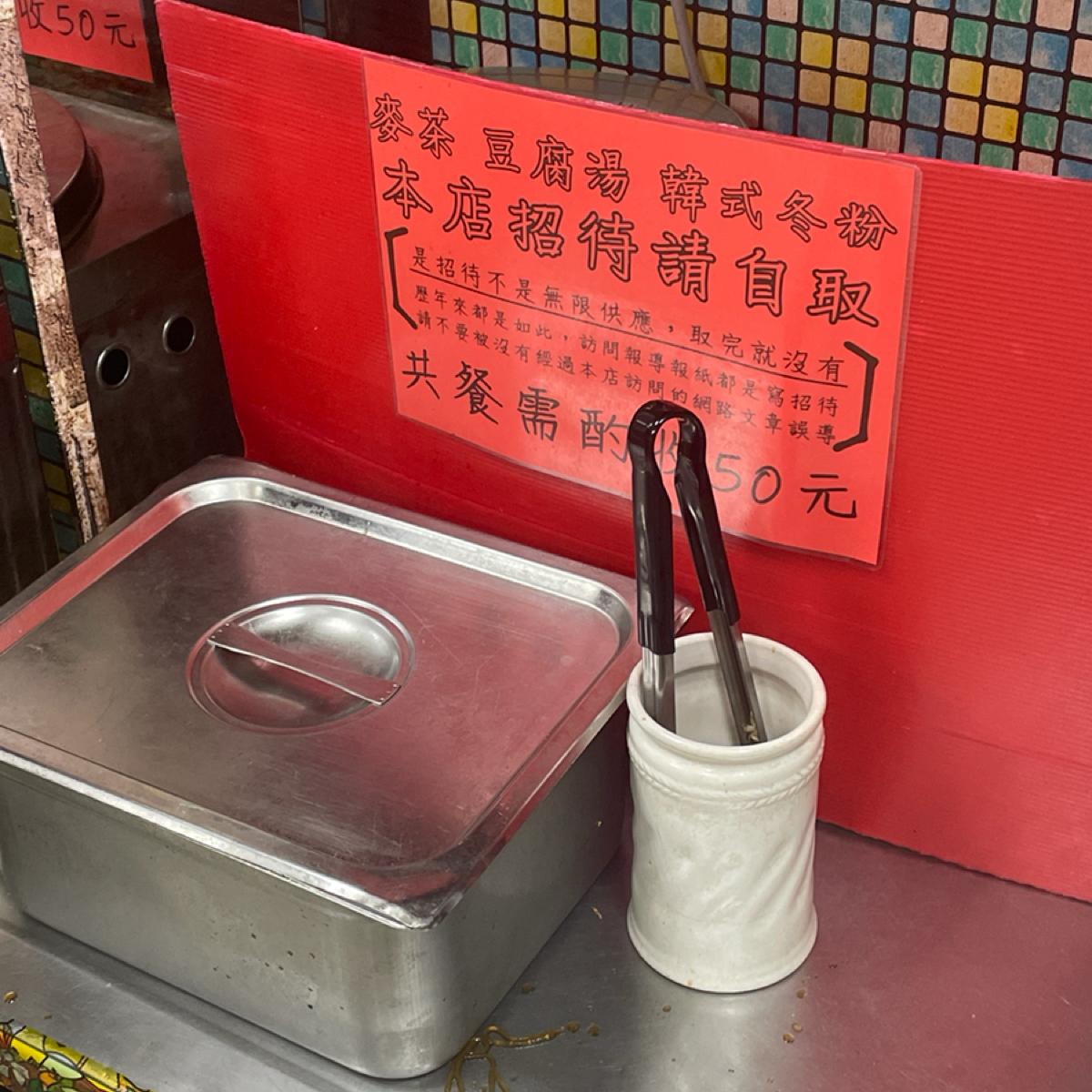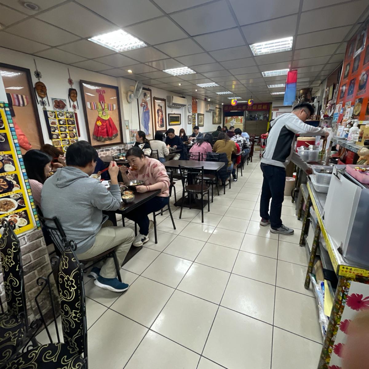 この韓国料理店は淮寧街、228公園の近くにあり、店の入り口にある赤い看板がとても目立ちます。店内にはたくさんの席があり、平日の昼時にはかなりの人が食事をしています。店内では春雨と豆腐のスープが食べ放題で、テイクアウトの場合は丼物が提供されます。