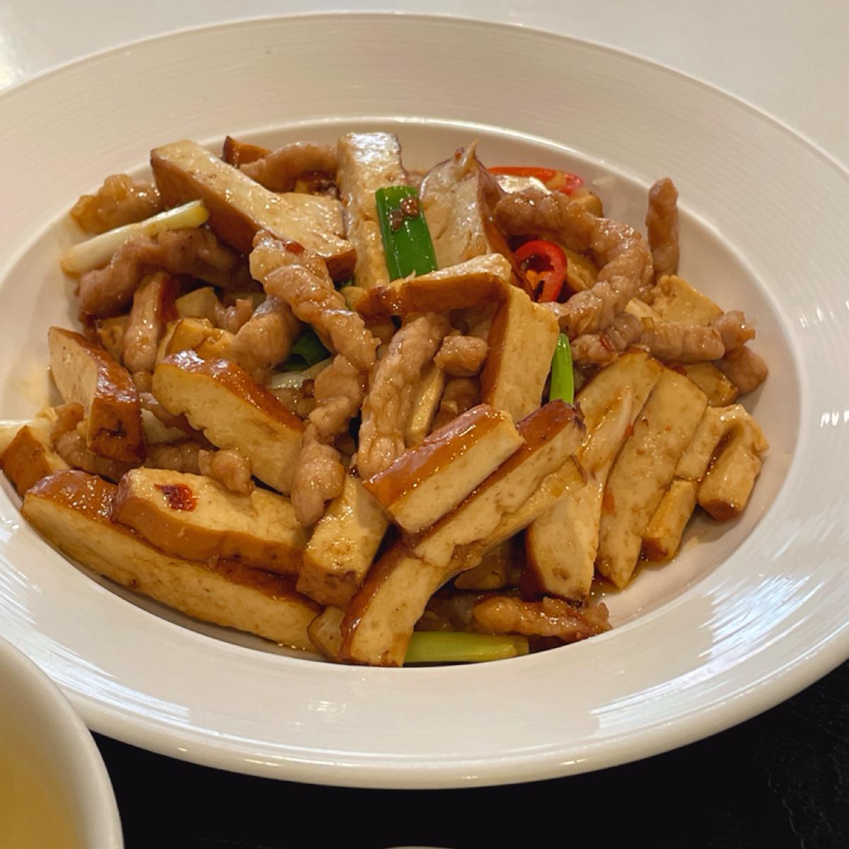 メイン料理は甘辛く美味しい味付けでご飯が進みました!お肉も柔らかく、豆腐との相性が抜群でした!