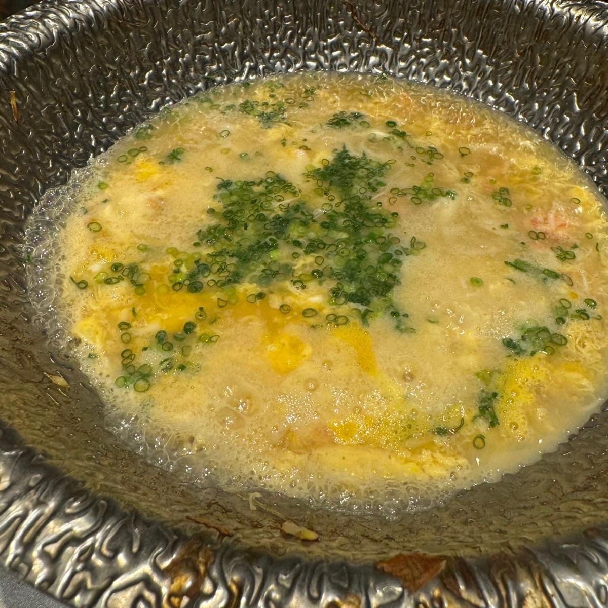 最後は雑炊に!!卵とネギが入っていて優しい味!身も入っていて最高