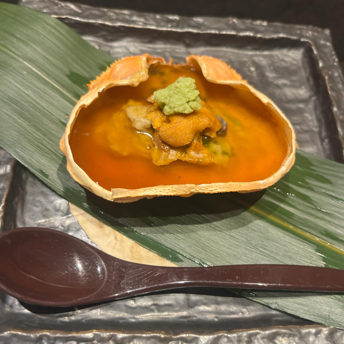 蟹の上にポン酢庵がかかっていて、庵の味がしっかりしている