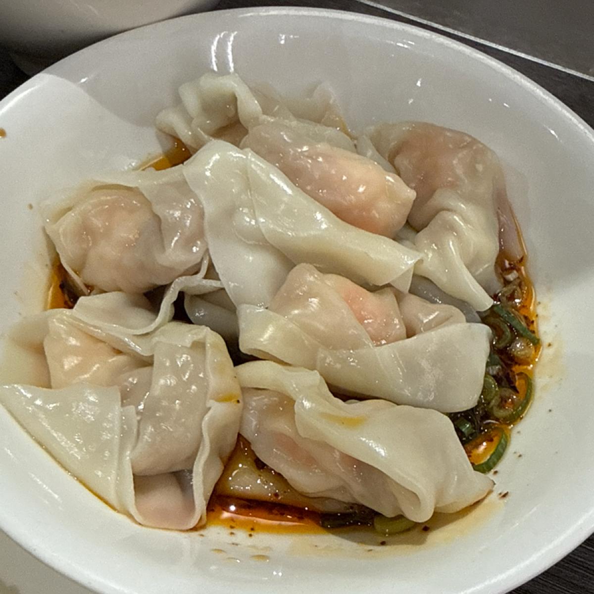 まずは《紅油鮮蝦炒手》。炒手の皮は薄く滑らかで、内側の具材は新鮮で甘みがあり、エビの存在感が際立っています。量もたっぷりです。紅油の香りは濃厚ですが、辛さはありません。花椒や辣油の層があり、食欲をそそり、何度も食べたくなる一品です。