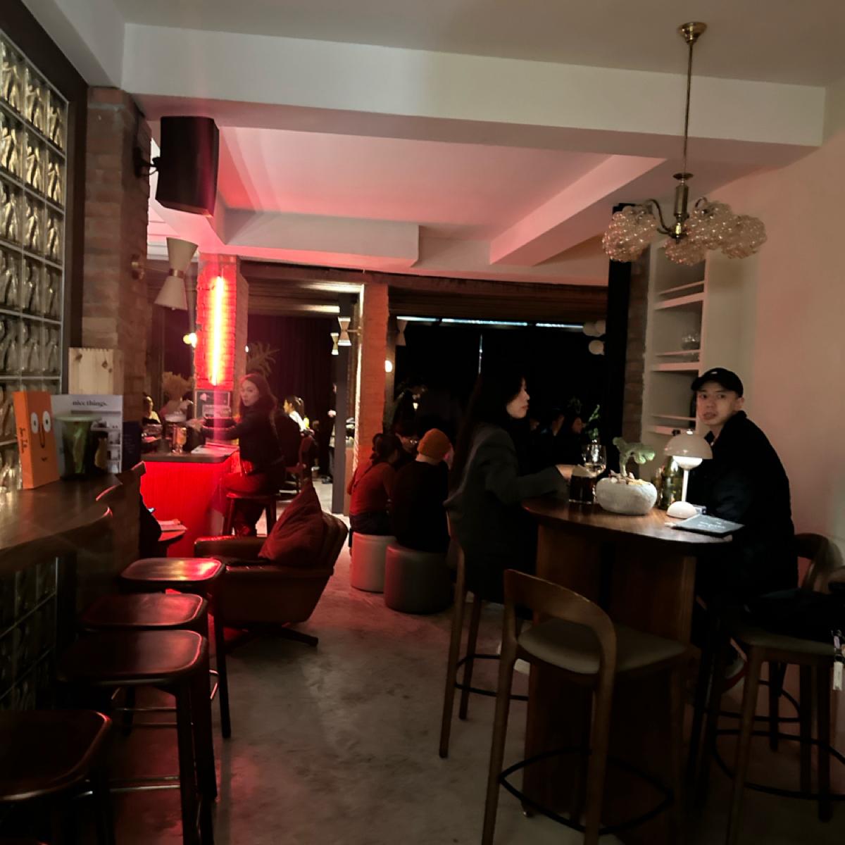 ここの食べ物は平均的ですが、フライドポテトは薄くて非常にサクサクしています。ワインに関しては、カクテルはあまり美味しいとは思いませんが、スパイシーな味わいの特別なワインがたくさんあります。あるいは花の風味が比較的強いワインもあります!ここの食べ物と場所について話すなら、一番良いのは生演奏があり、雰囲気が素晴らしいことです。こちらも予約制で、2階にはソファーエリアもあります。