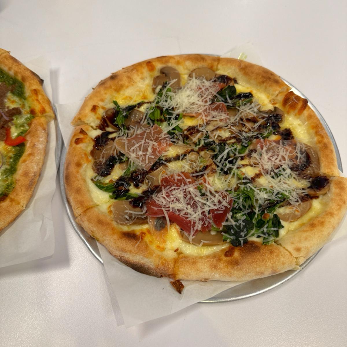 🍄 ワイルドマッシュルームとほうれん草のピザ ($240):