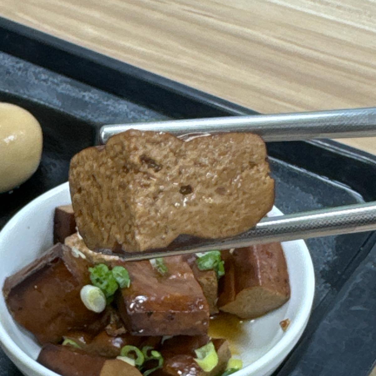 今日、一番驚いたのは「豆干」で、なぜかとても美味しかったです!柔らかさと硬さがちょうど良く、味がしっかりしていました!でも唯一おすすめしないのは…鳥卵……冷凍から出してきたもので、解凍しても完全には解凍されておらず、まだシャーベット感があります……みんなが避けるべきポイントですので、絶対に頼まないでください!