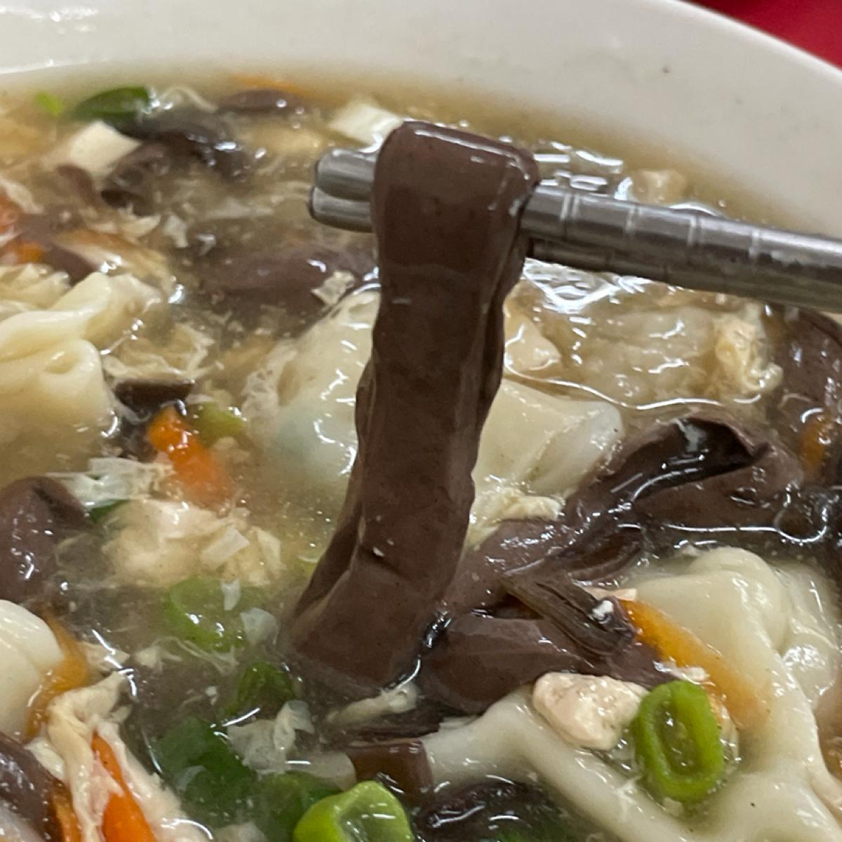 最初に運ばれてきたときは、キクラゲ、豚細切り、鴨の血抜き、卵のしずく、ニンジンなど具材がたくさん入っているのかと思いました。味付けは辛すぎず、酸っぱすぎず、濃い味がお好みの場合は、酢や唐辛子を加えてもいいでしょう。一番嬉しいのは、皮が薄くて餡がたっぷり入った餃子です。 タレにつけなくてもネギの香りがしっかりと感じられ、餡の風味がとても美味しいです。一杯食べたら大満足!