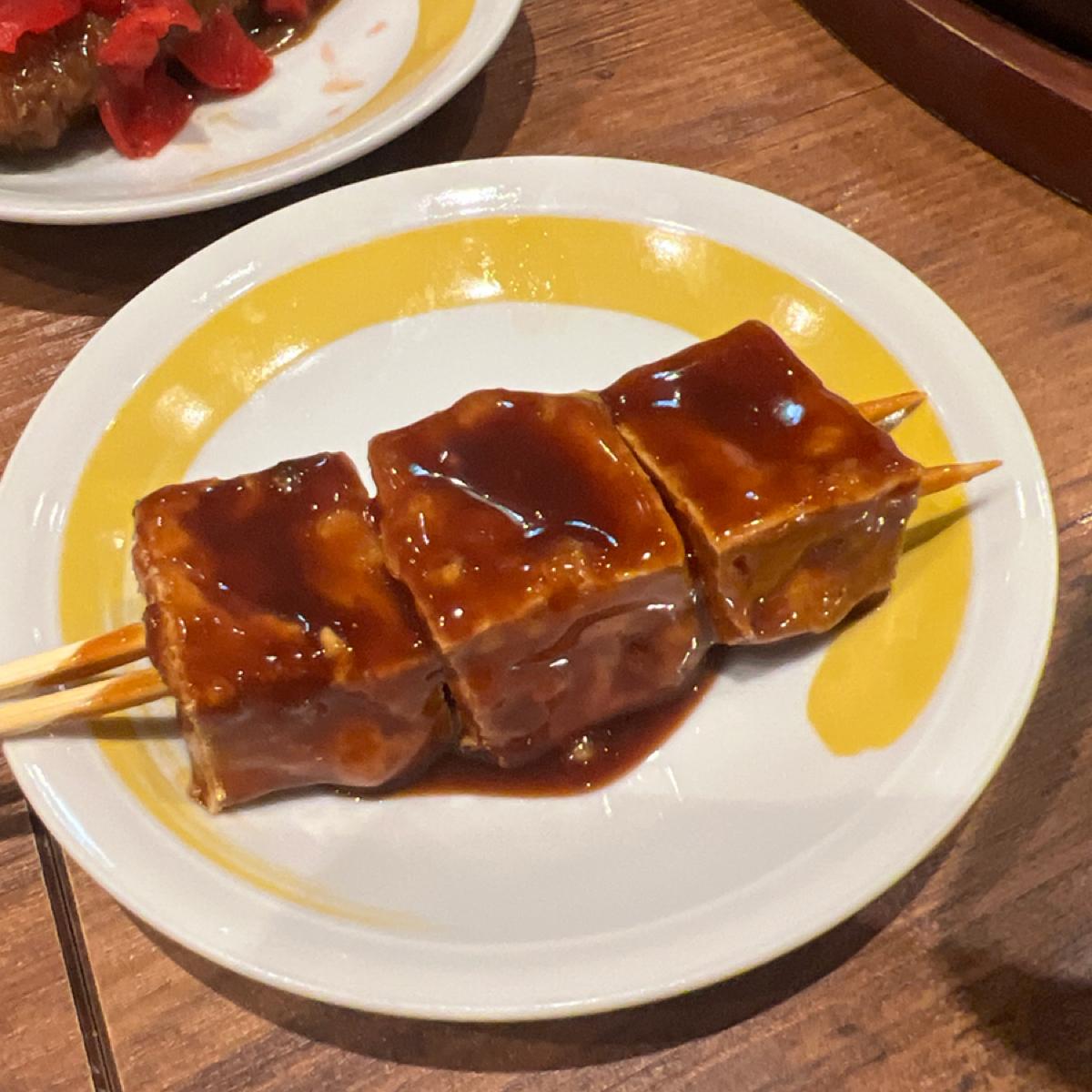 🍘鶏肉と玉ねぎの串はちょうどいい味付けで、味噌豆腐は少し柔らかめで味が濃いですが、酒のつまみにはぴったりです。海苔粉をまぶした揚げ魚ソーセージは最初は揚げ野菜だと思っていたのですが、意外と美味しく、外はカリカリ、中はぷりぷりです。