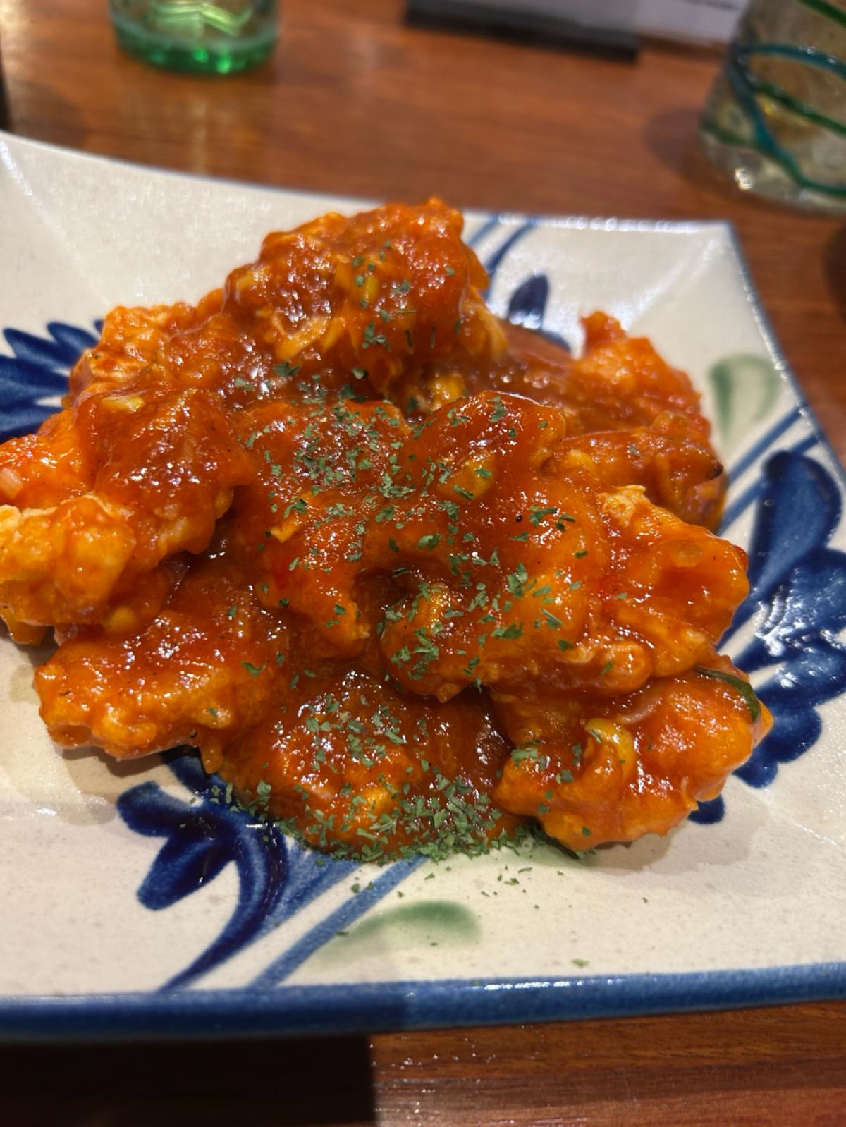 ●海老のフリット チリソース - Shrimp Frit Chili Mayonnaise Sauce。 ¥1078。サクサクで辛さが丁度良く美味い。