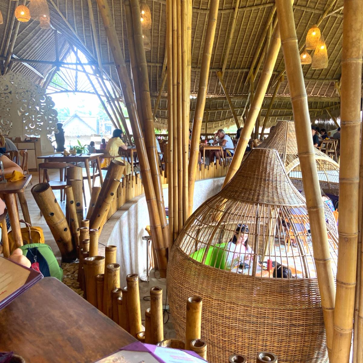 レストランの景観は本当に気に入りました。全体が竹と藁で作られた建物で、横には池の景色もあります。個室の席は竹で作られたランタンのような形で、とてもおしゃれで南洋の雰囲気が漂っています。