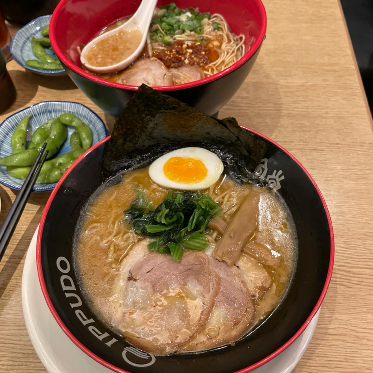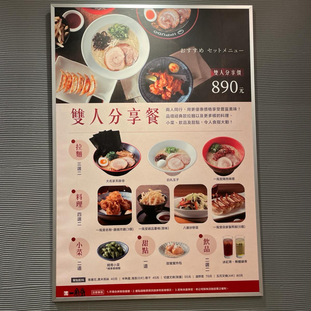 今回の食事は2人でシェアしてNT$890(サービス料なし)でしたが、一風堂のラーメンはスープが全体的に少ししょっぱいので塩分過多には注意が必要です。 2人用のテーブルは少し狭いと思いますが、無料で提供されるお茶は南アフリカの国宝のノンカフェインで、悪くないです!付け合わせの枝豆は味がないし、唐揚げも揚げ餃子も普通だけど、デザートの「スイートハニー揚げパン」も悪くない!