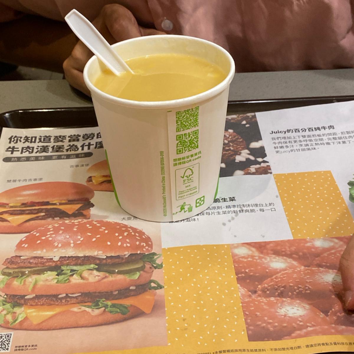 コーンポタージュ+塩抜きのフライドポテト:フライドポテトの味が濃くて、コーンポタージュの味が引き立っていて、まるでマッシュポテトを食べているようでした。