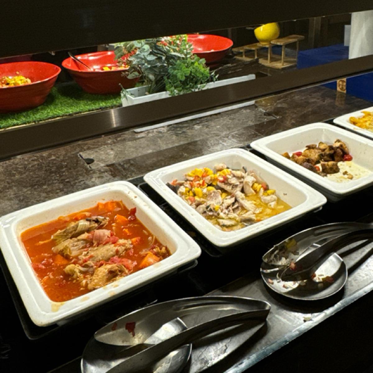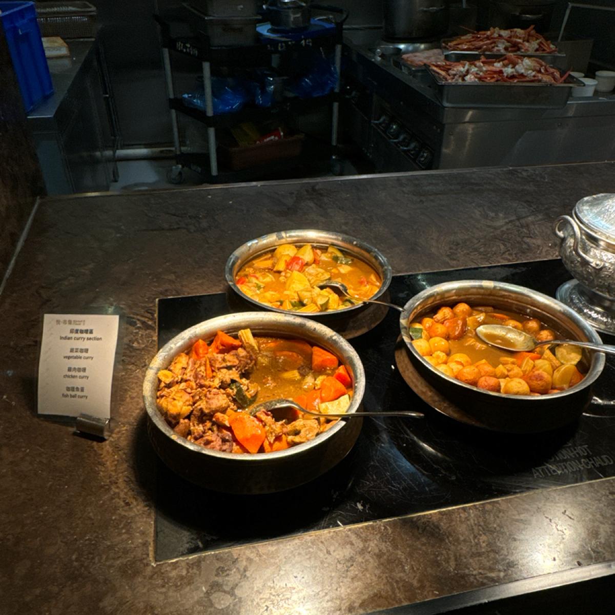 小規模なバイキングで、各料理は2、3種類あり、十分に食べられ、選択に悩むことが少なかったです。