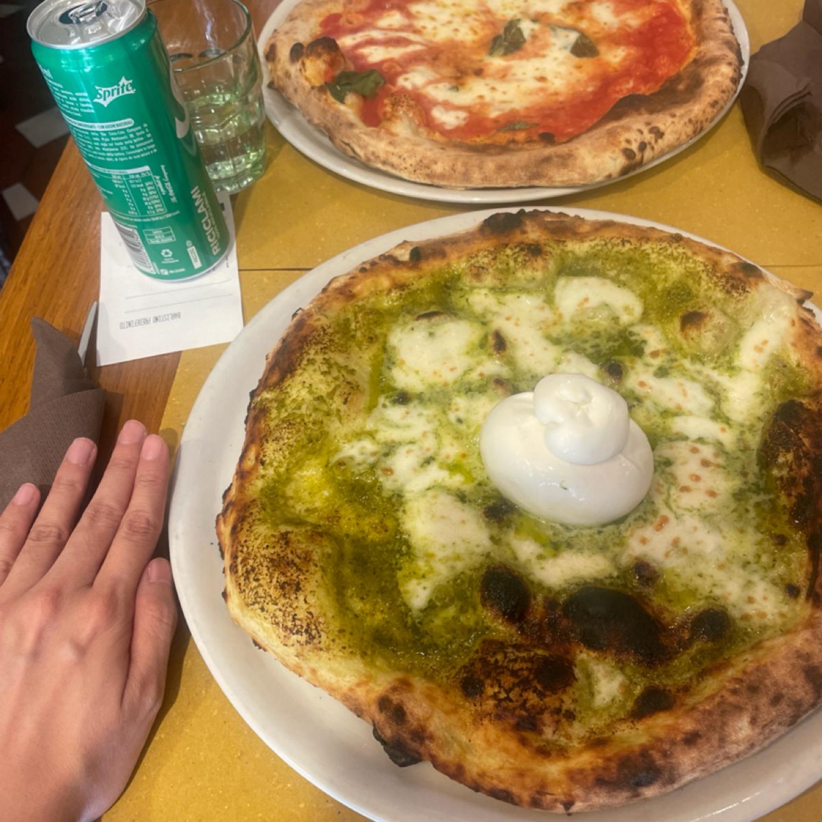 全体的には美味しいと思いますが、そんなに長く待つほど美味しいわけではありません。ペストピザは NT$ 500 近くするので、並ばなくても行けると思います。そのまま食べるも良し、持ち帰りで食べるも良し、2人で1個がちょうどいい
