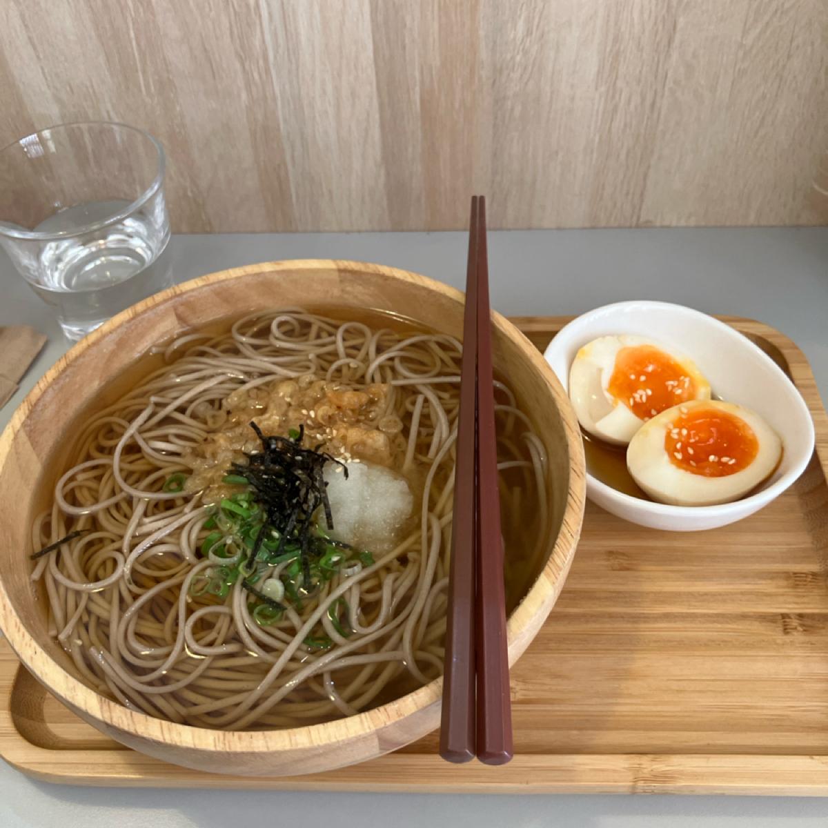 温かいそば(オプションで天ぷらまたは温泉卵付き) $180