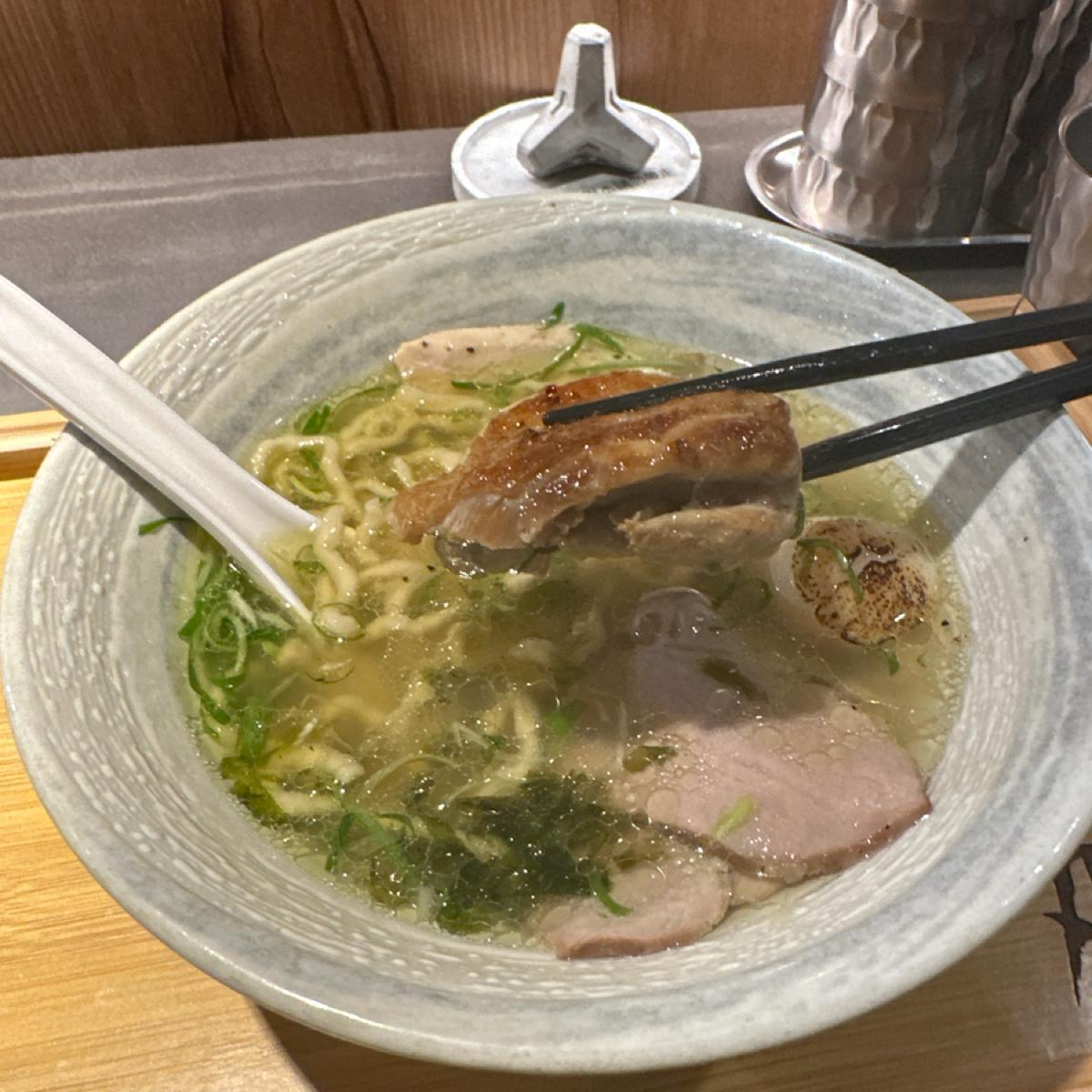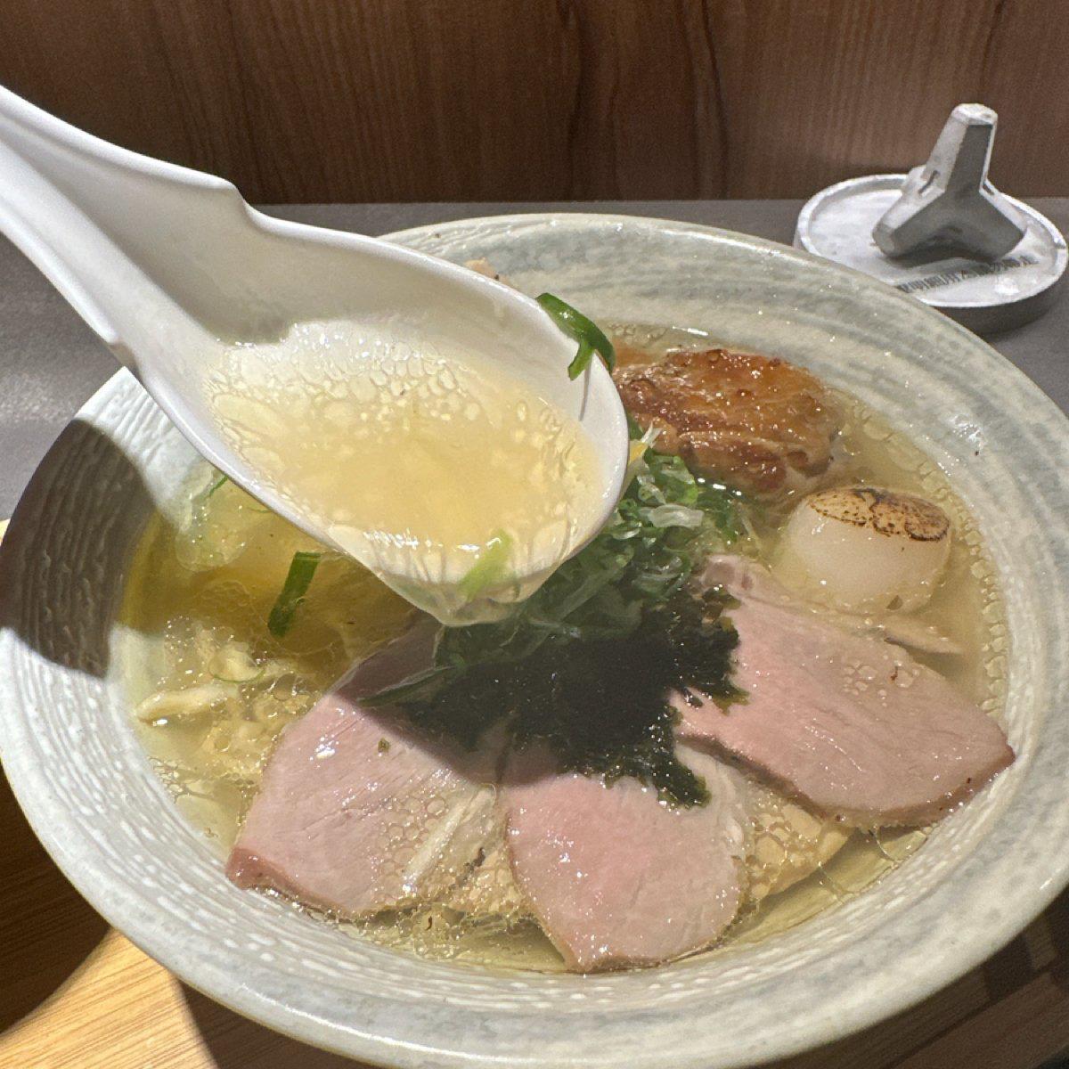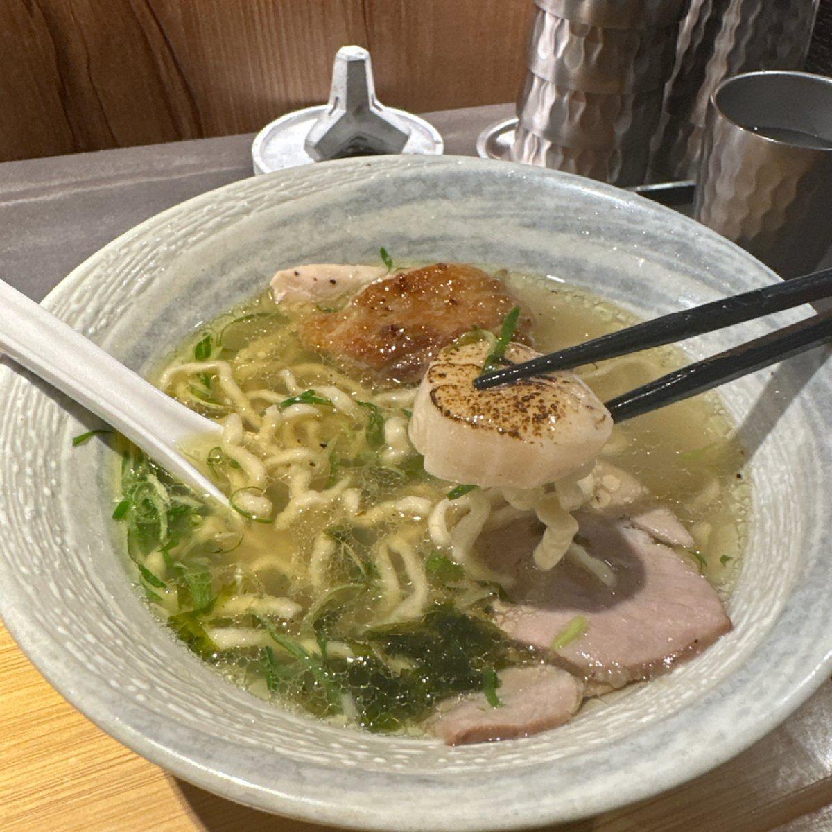 特製鶏帆立塩ラーメンは全体的にまろやかな口当たりで、鶏モモやチャーシュー、帆立の旨味が一番印象に残ります。